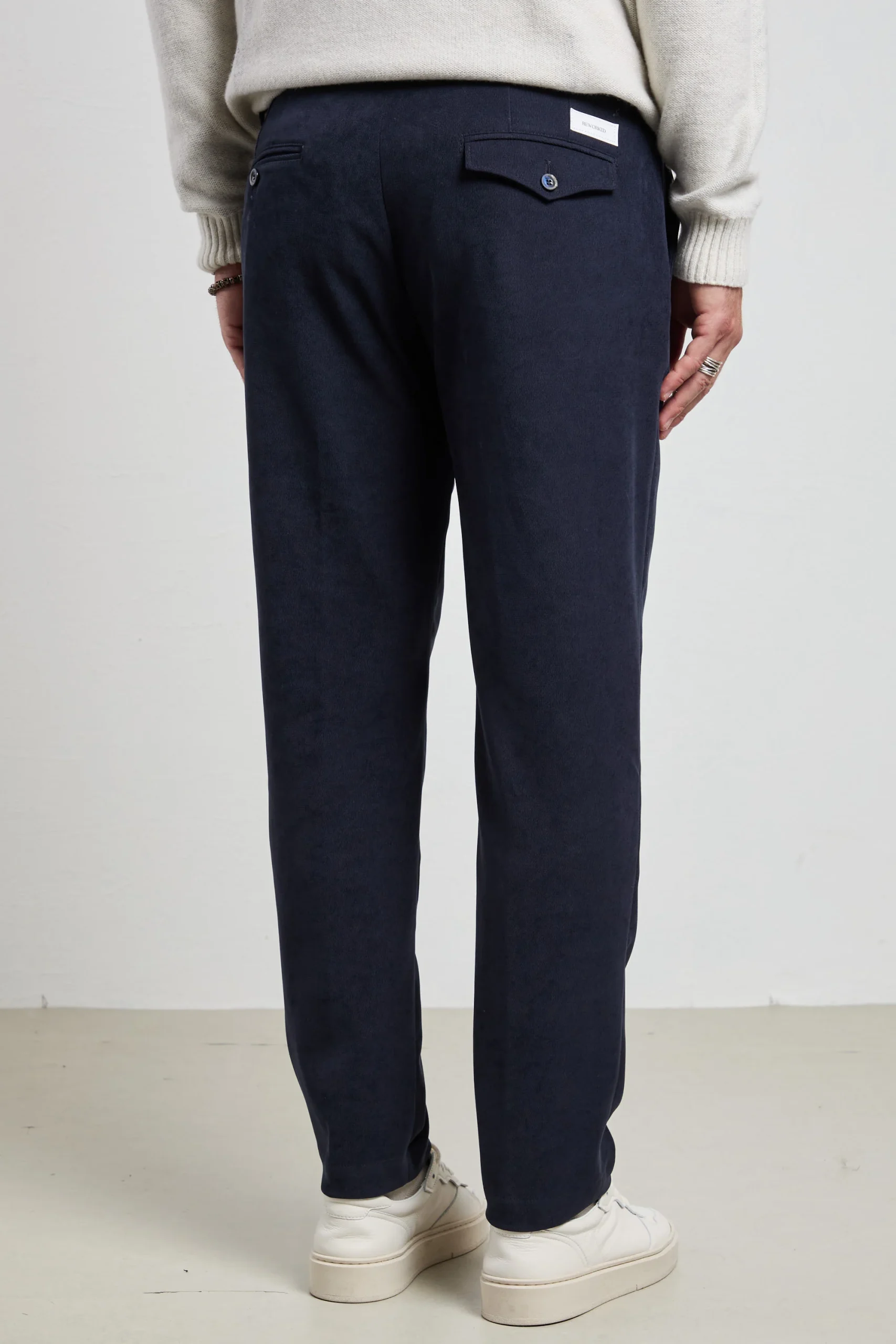- tasche: oblique laterali e a filetto sul retro