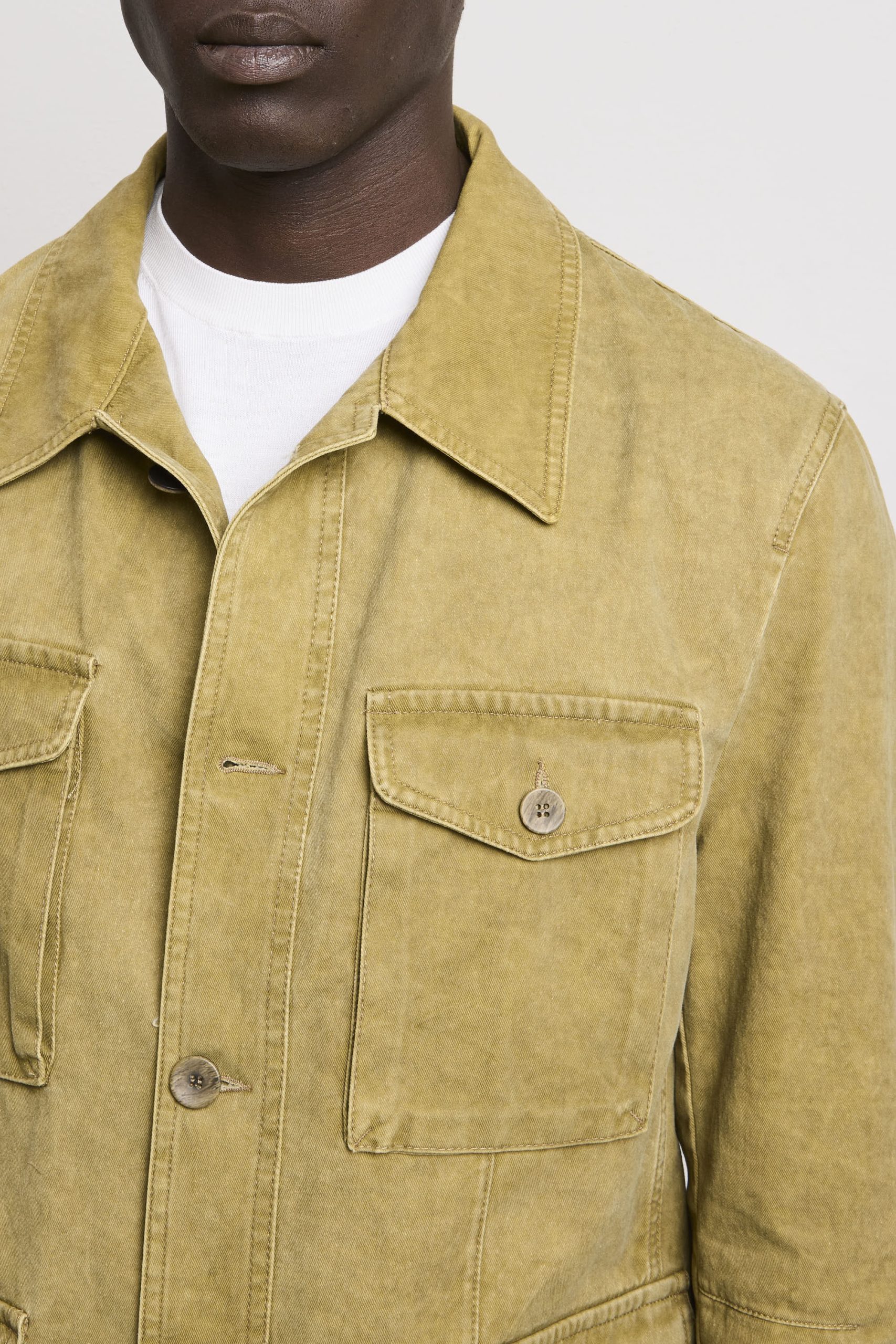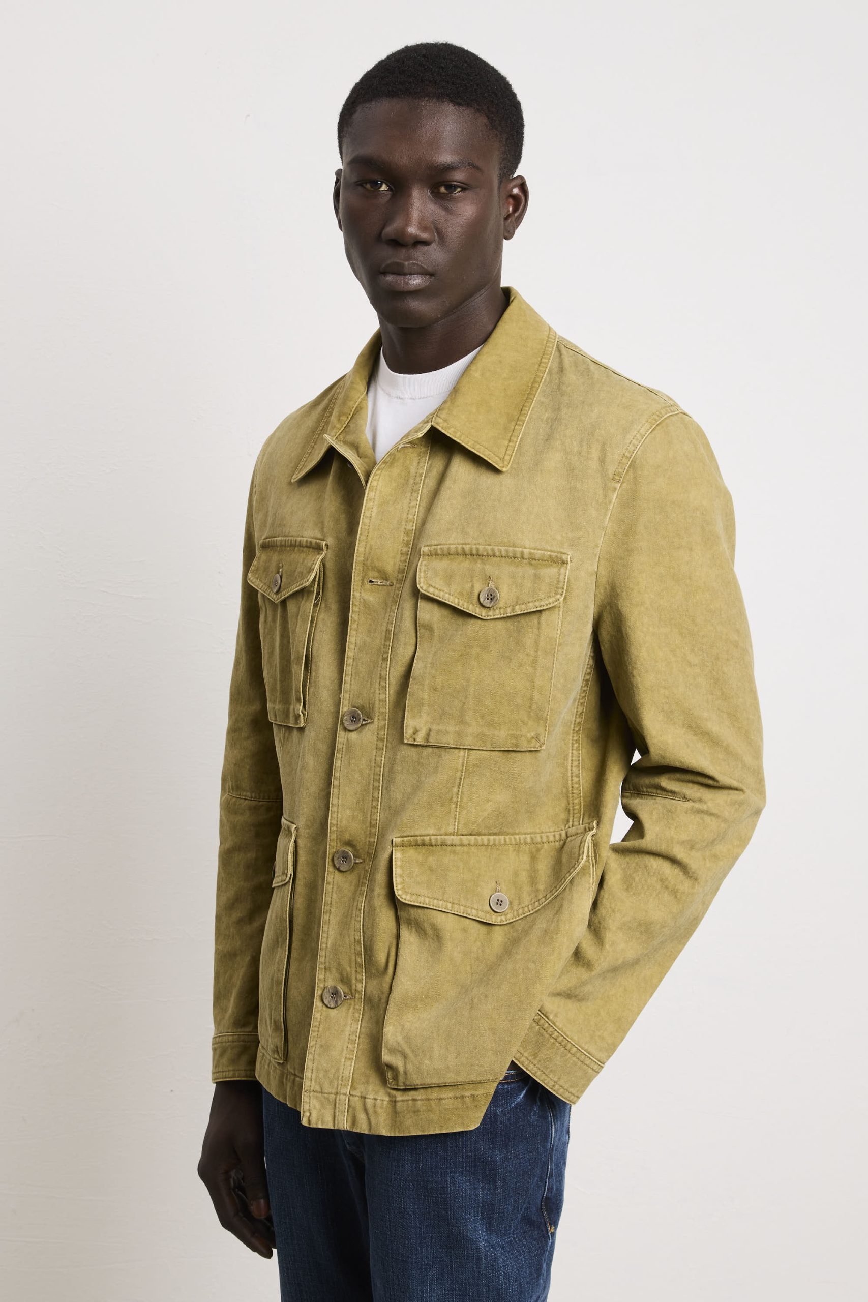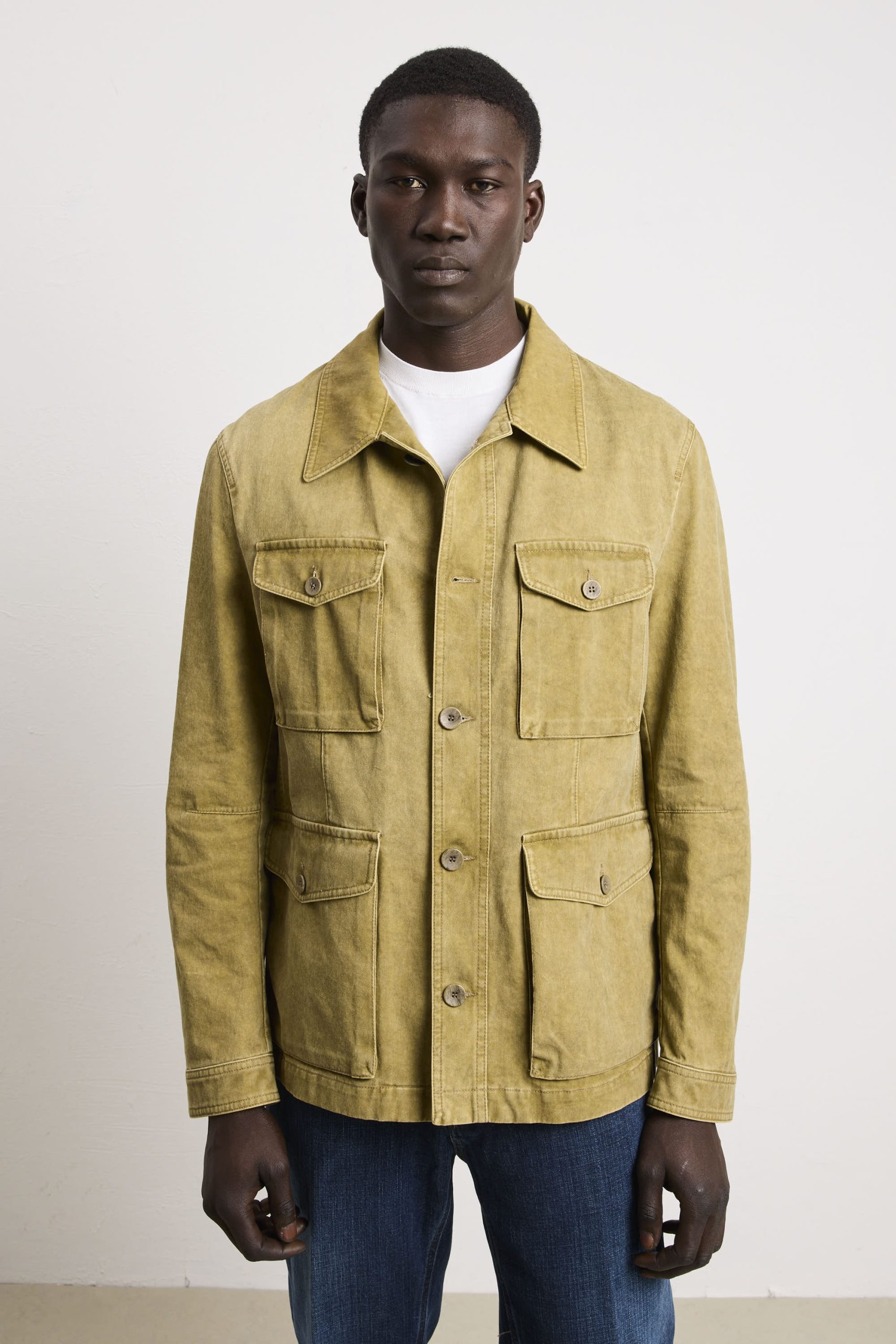 Un’interpretazione contemporanea di un classico senza tempo. Questa sahariana vanta una vestibilità regolare e dritta che garantisce una linea pulita e proporzionata, ideale per chi apprezza la precisione costruttiva. Le quattro tasche con chiusura a patta e bottoni riflette l’eredità funzionale del design sahariano, fornendo storage pratico senza compromettere l’equilibrio estetico. Il collo stile camicia consente versatilità stilistica, adattandosi tanto a contesti casual quanto semi-formali. I polsini chiusi con bottoni permettono regolazione della vestibilità e garantiscono una finitura ordinata. La chiusura centrale con bottoni assicura affidabilità costruttiva e facilità d’uso. La tonalità kaki si integra facilmente in palette cromatiche diverse, rendendola un pezzo fondamentale per chi ricerca qualità costruttiva, funzionalità intelligente e un’estetica che trascende le tendenze stagionali.