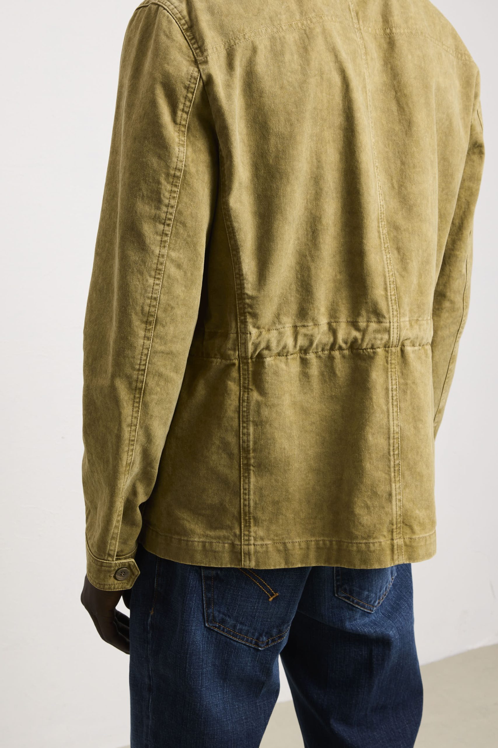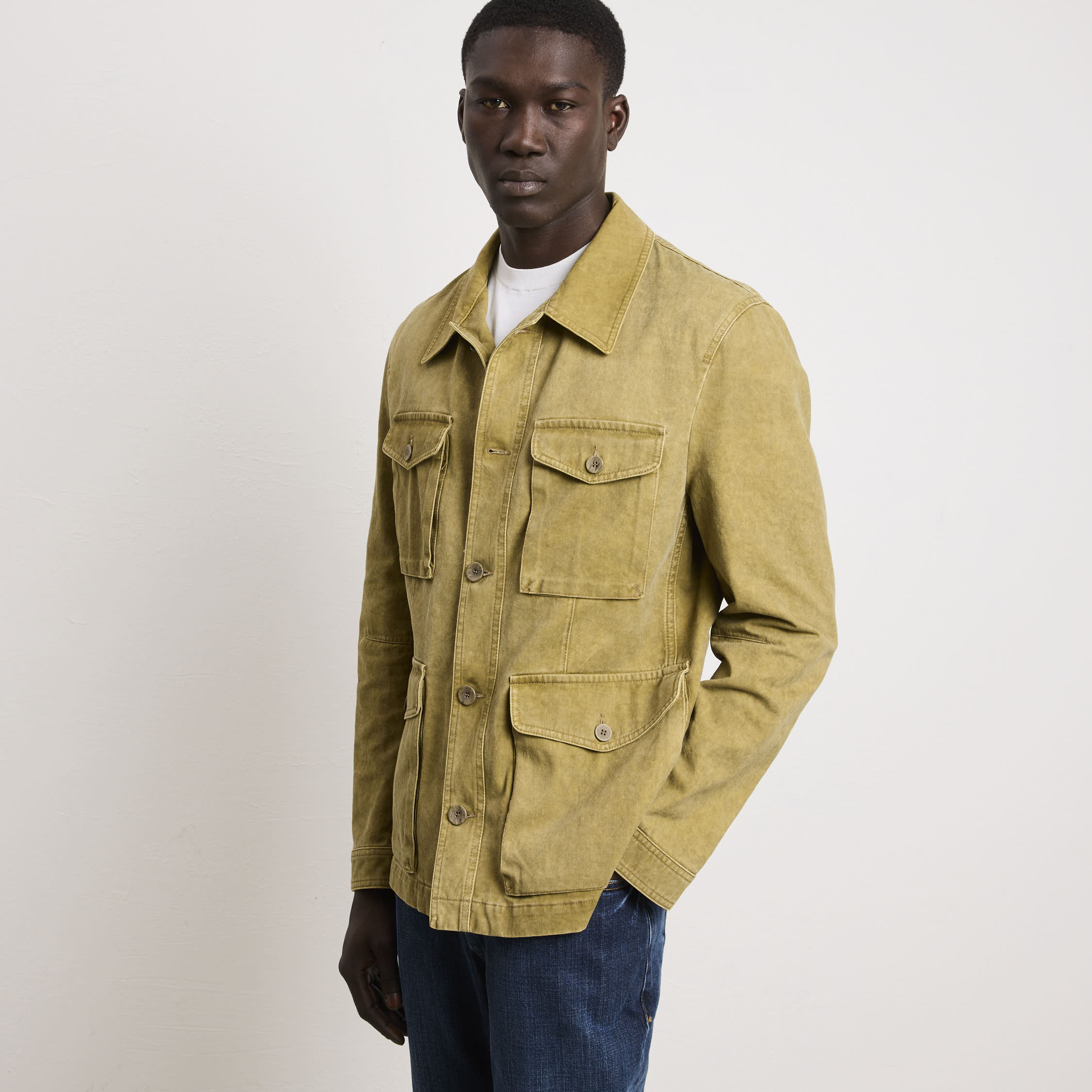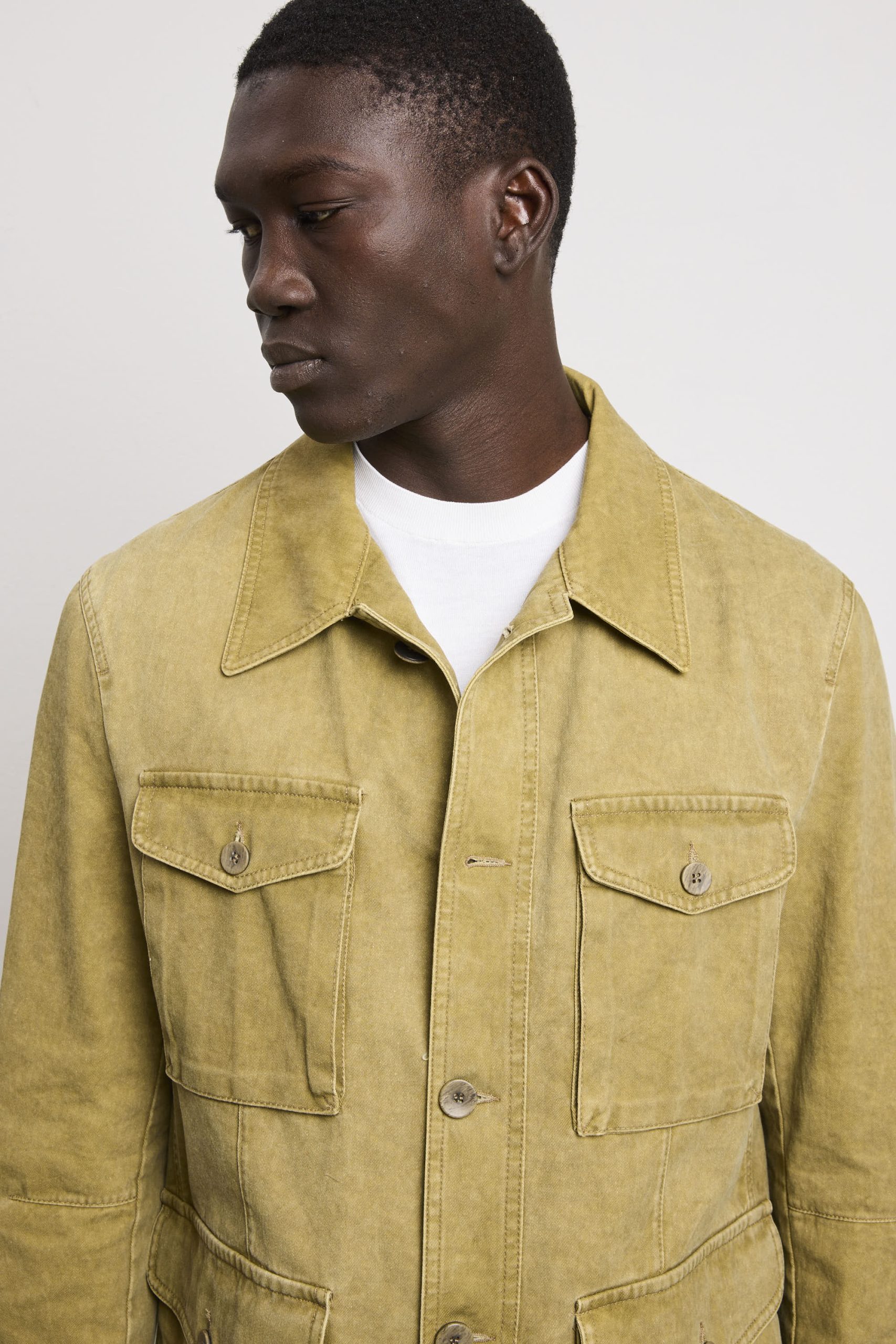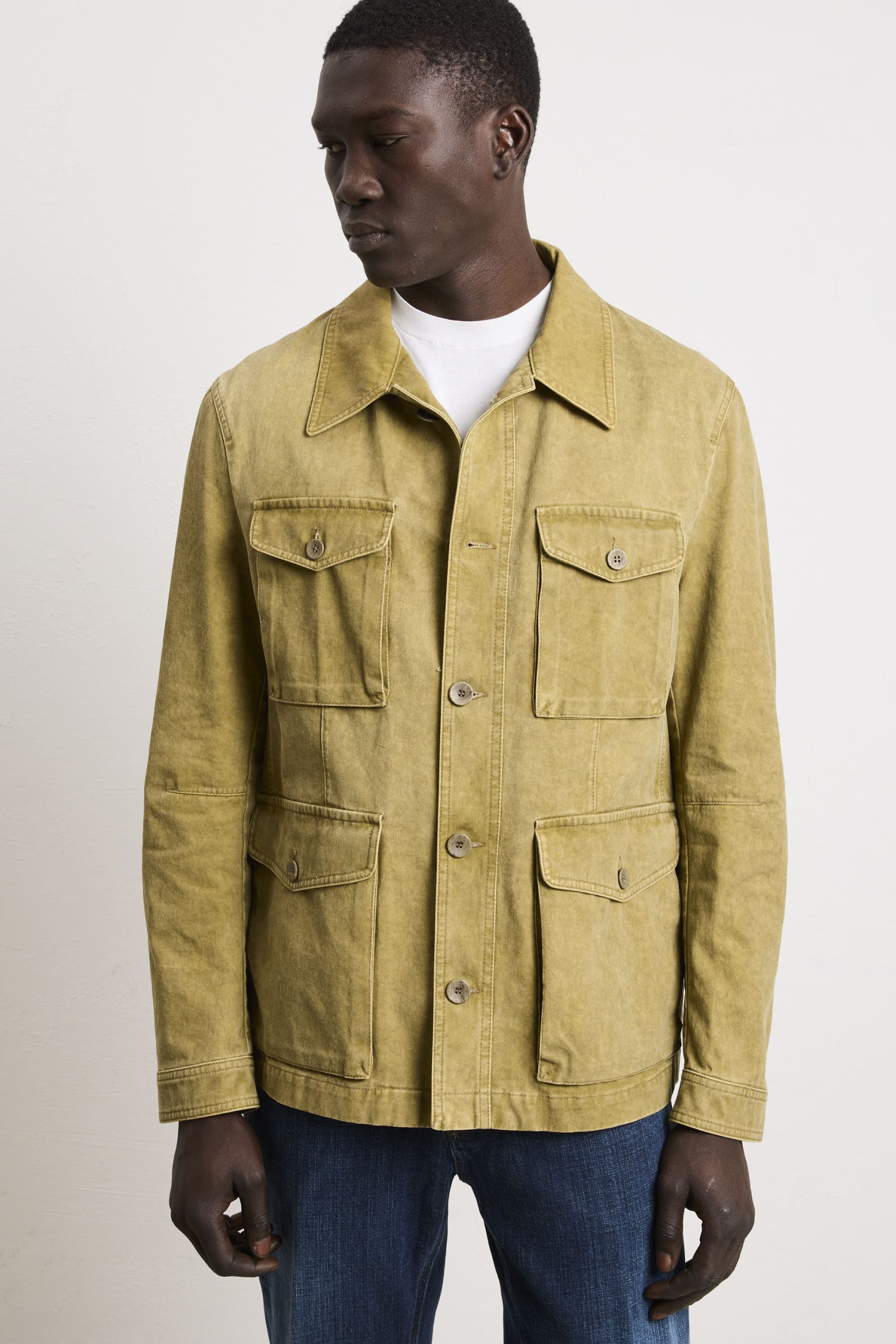 Un’interpretazione contemporanea di un classico senza tempo. Questa sahariana vanta una vestibilità regolare e dritta che garantisce una linea pulita e proporzionata, ideale per chi apprezza la precisione costruttiva. Le quattro tasche con chiusura a patta e bottoni riflette l’eredità funzionale del design sahariano, fornendo storage pratico senza compromettere l’equilibrio estetico. Il collo stile camicia consente versatilità stilistica, adattandosi tanto a contesti casual quanto semi-formali. I polsini chiusi con bottoni permettono regolazione della vestibilità e garantiscono una finitura ordinata. La chiusura centrale con bottoni assicura affidabilità costruttiva e facilità d’uso. La tonalità kaki si integra facilmente in palette cromatiche diverse, rendendola un pezzo fondamentale per chi ricerca qualità costruttiva, funzionalità intelligente e un’estetica che trascende le tendenze stagionali.