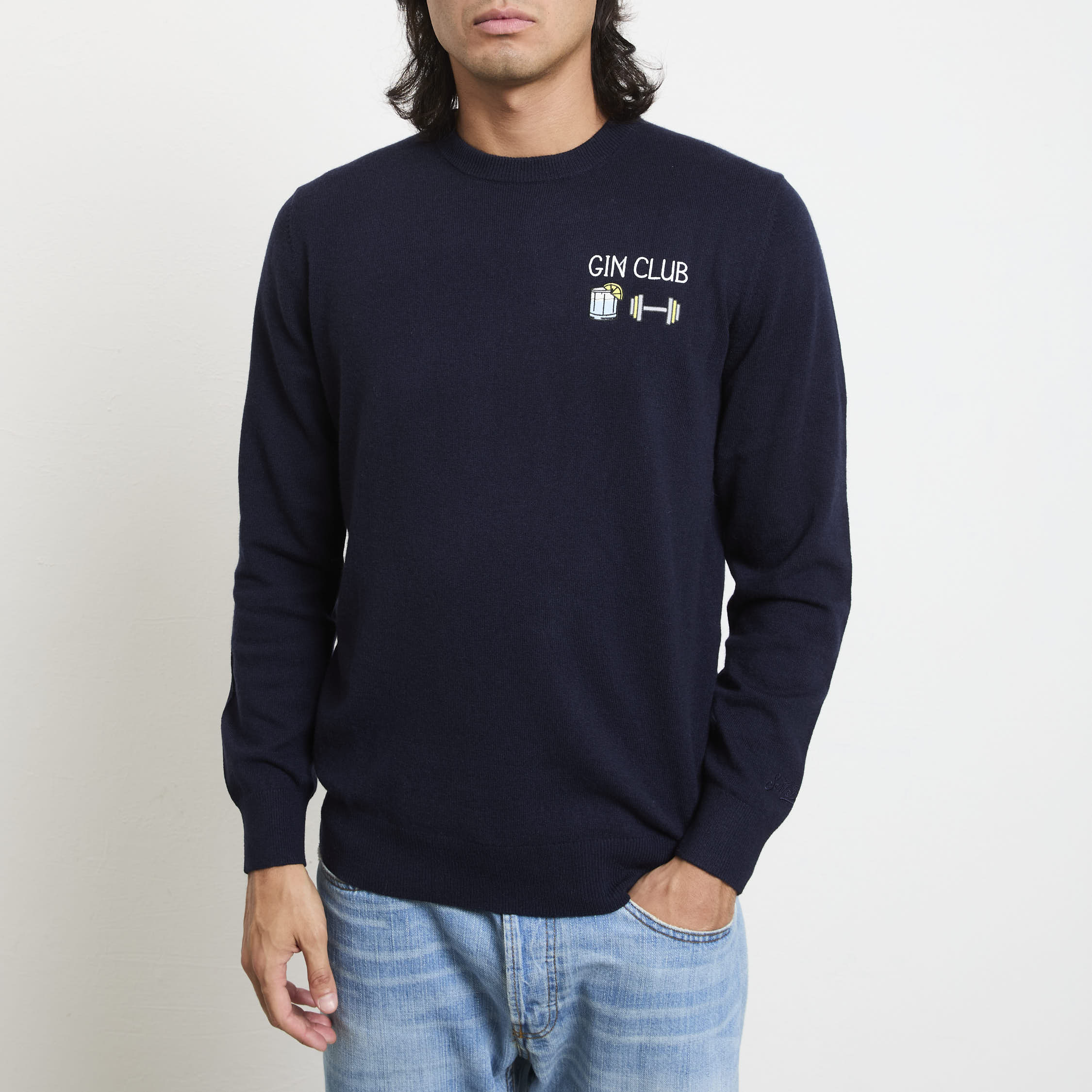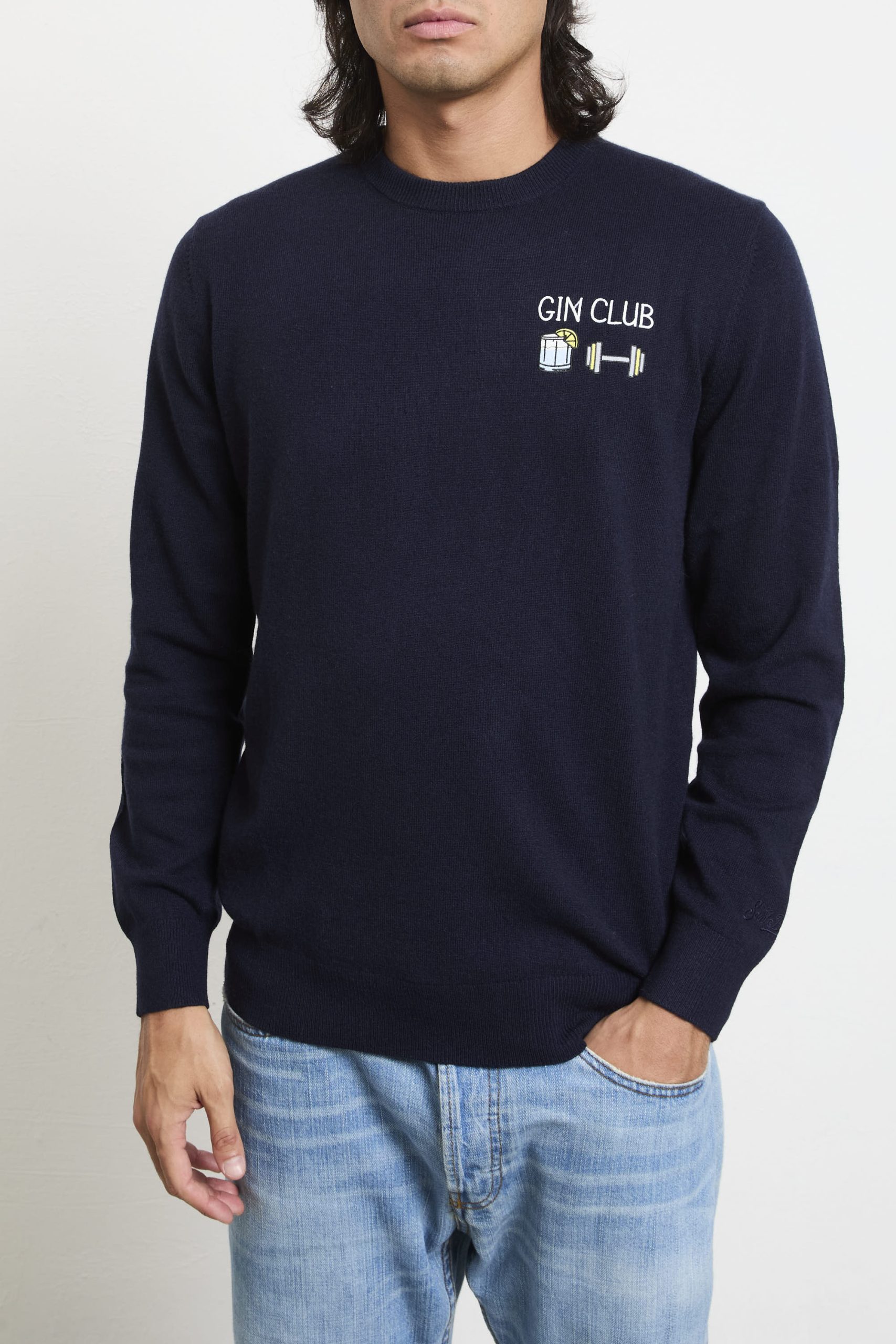 Questo maglione di Saint Barth è un inno all’eleganza ironica e al comfort invernale. Realizzato in un pregiato mix di filati, offre calore e morbidezza. Il ricamo “Gin Club” sul petto aggiunge un tocco distintivo, mentre il colore blu scuro lo rende versatile per diverse occasioni. Perfetto per le serate invernali, si abbina splendidamente a pantaloni in velluto a coste e scarpe derby in pelle scura.