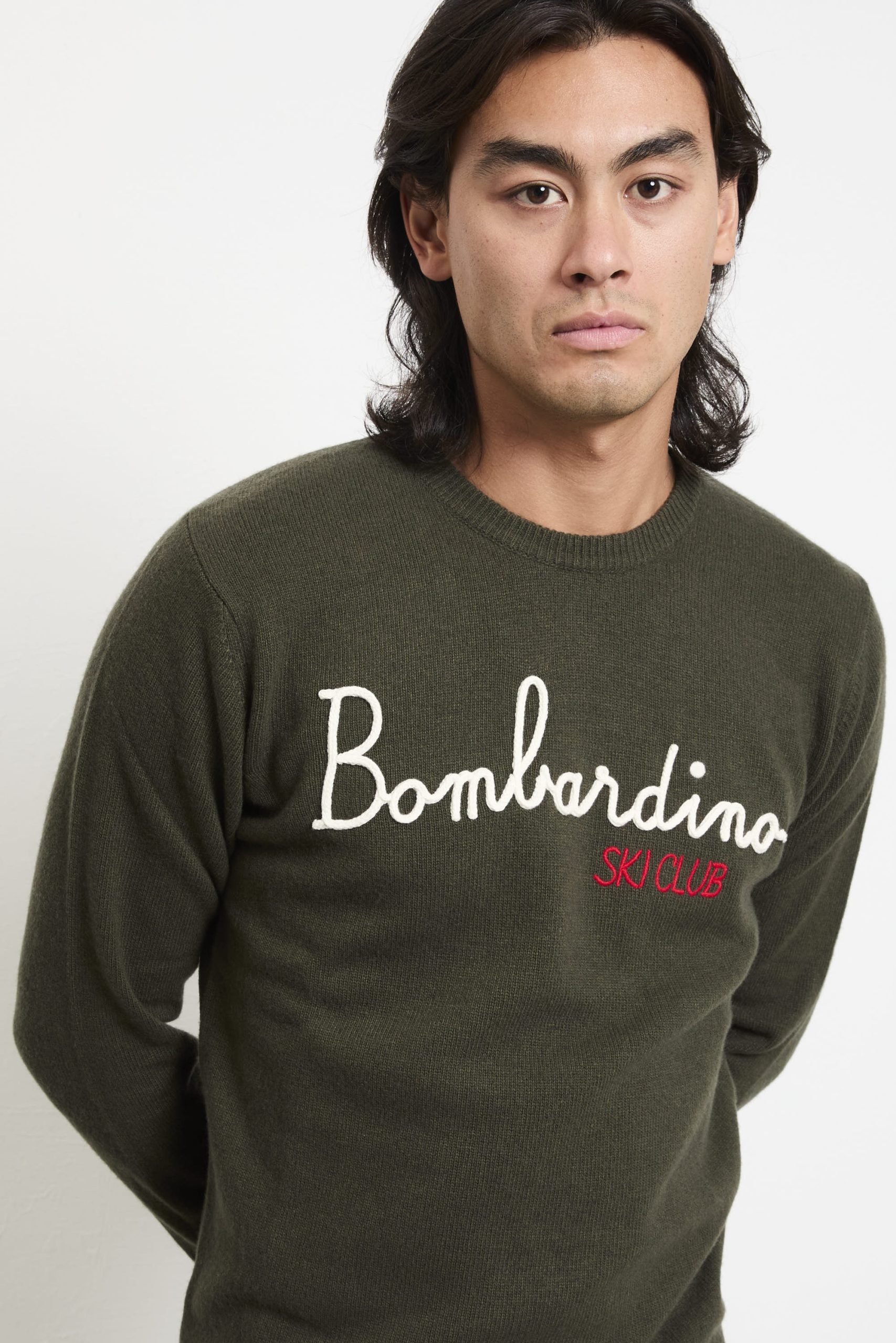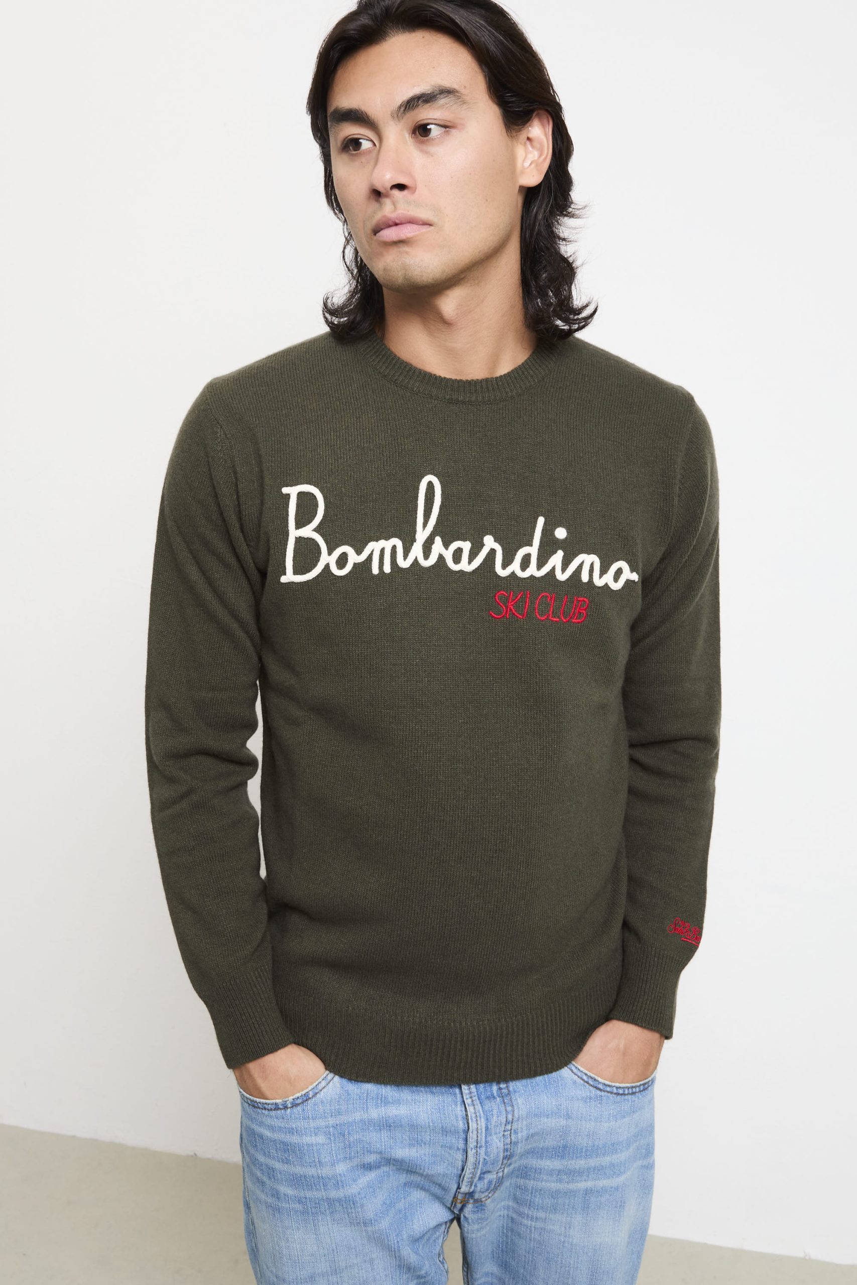 Un gioiello per gli amanti dello stile ski‑chic: il maglione verde MC2 Saint Barth, con scritta “Bombardino” in rilievo e cucita, trasmette quell’energia alpine con un twist urbano. Il colore lo rende perfetto per un après‑ski sofisticato, da abbinare a giacca in piuma ultraleggera e jeans slim o a cargo fango e stivaletti.