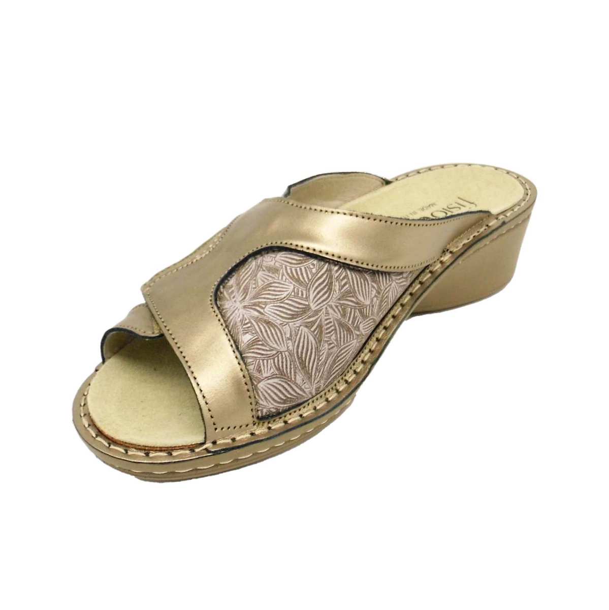 Sandali ortopedici realizzati in tomaia in pelle co inserti elasticizzati bilateralmente, utile per chi ha problemi di alluce valgo dita a martello e calli.