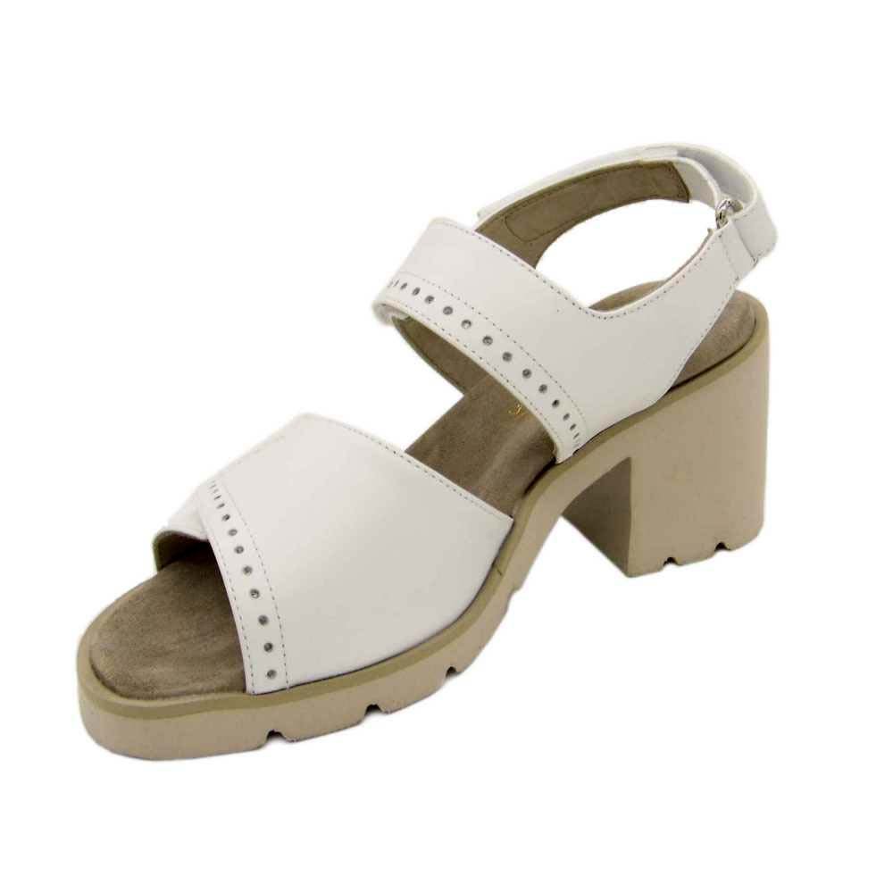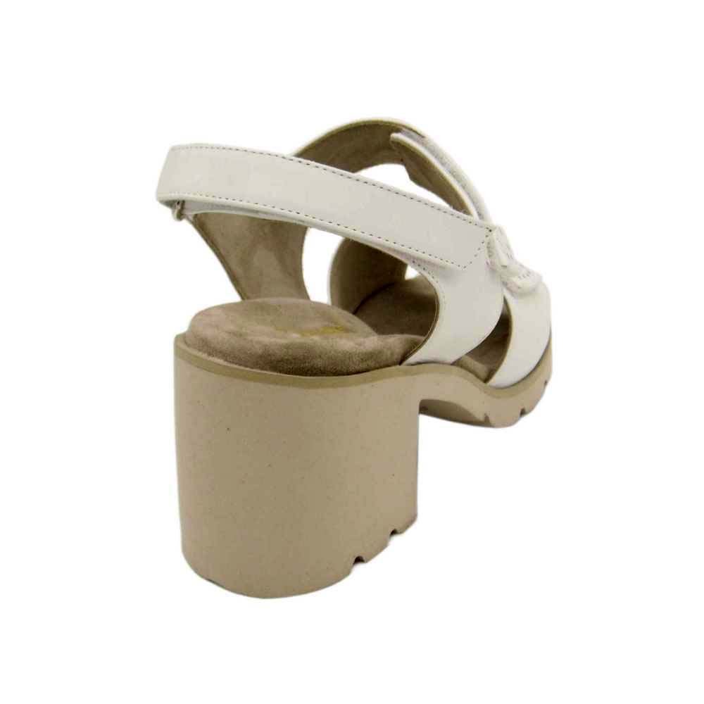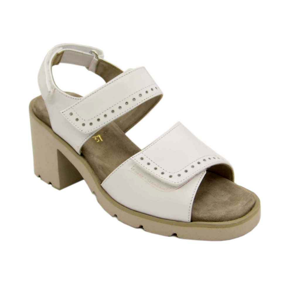 Sandali ortopedici con tacco chiusi posteriormente al tallone grazie ad un cinturino con chiusura regolabile a strappo.