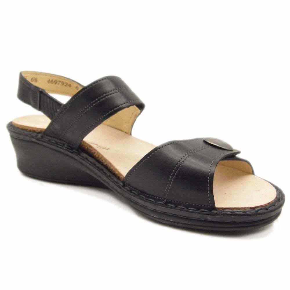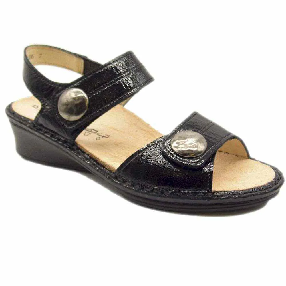 Sandali ortopedici chiusi posteriormente al tallone, facilmente regolabili grazie a due chiusure a strappo, consentono di adattare con precisione questo sandalo da donna al piede, per garantire una tenuta sicura e perfetta.