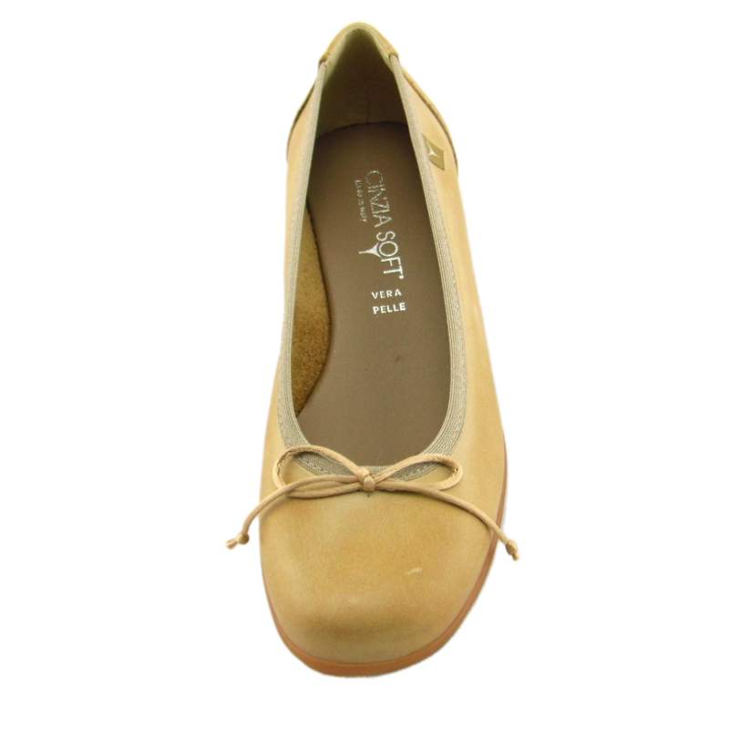 Comoda scarpa ballerina in vera pelle, presenta un delicato fiocco posto