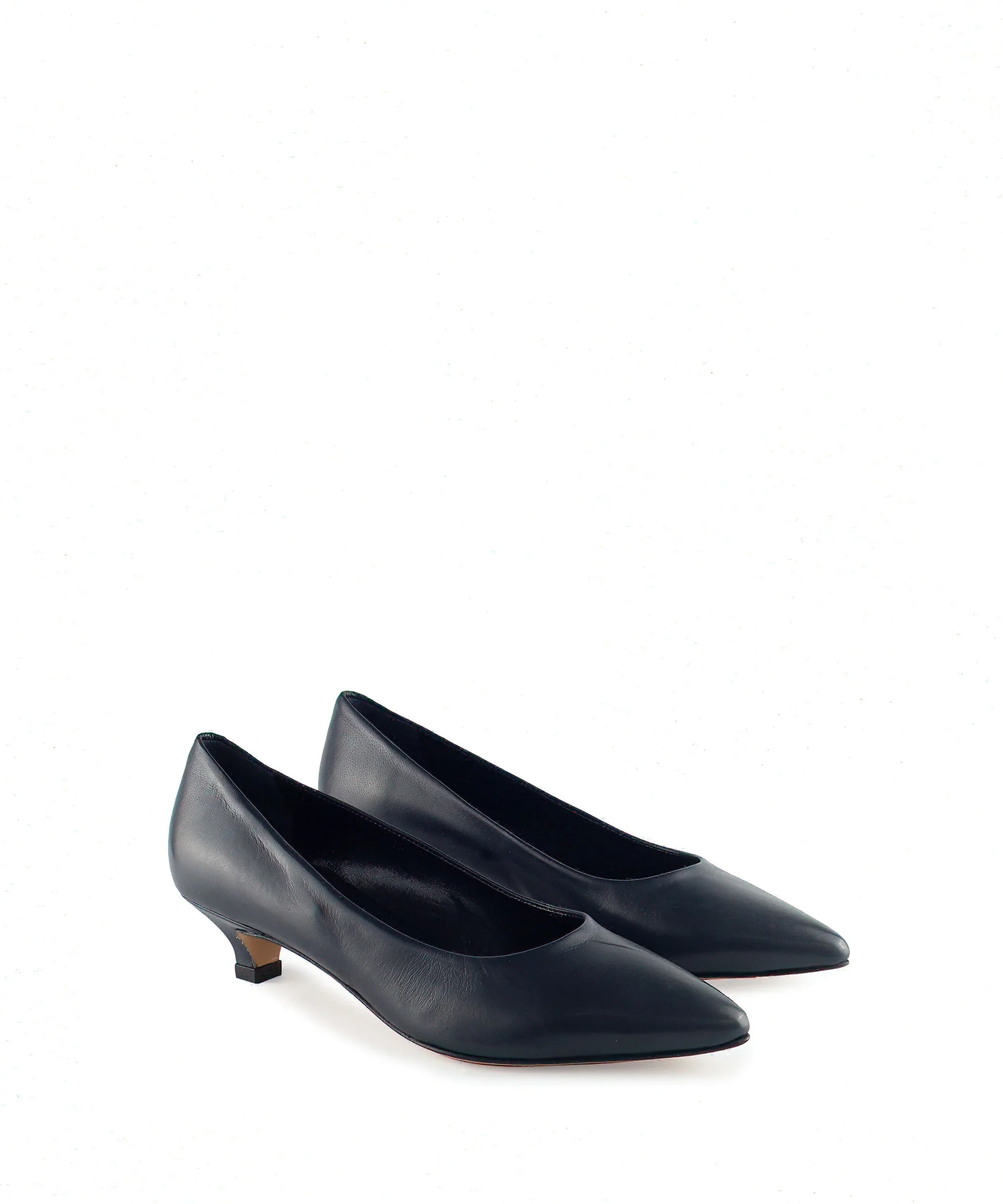 Scarpe Décolleté donna a punta in pelle. Questo modello di décolleté è disponibile in altre varianti colore. Queste scarpe da donna sono il connubio perfetto tra stile sofisticato e praticità quotidiana. Il tacco di 3 cm ti regala un tocco di femminilità senza sacrificare la comodità , consentendoti di affrontare la giornata con sicurezza e grazia. Scarpe décolleté a punta blu navy.