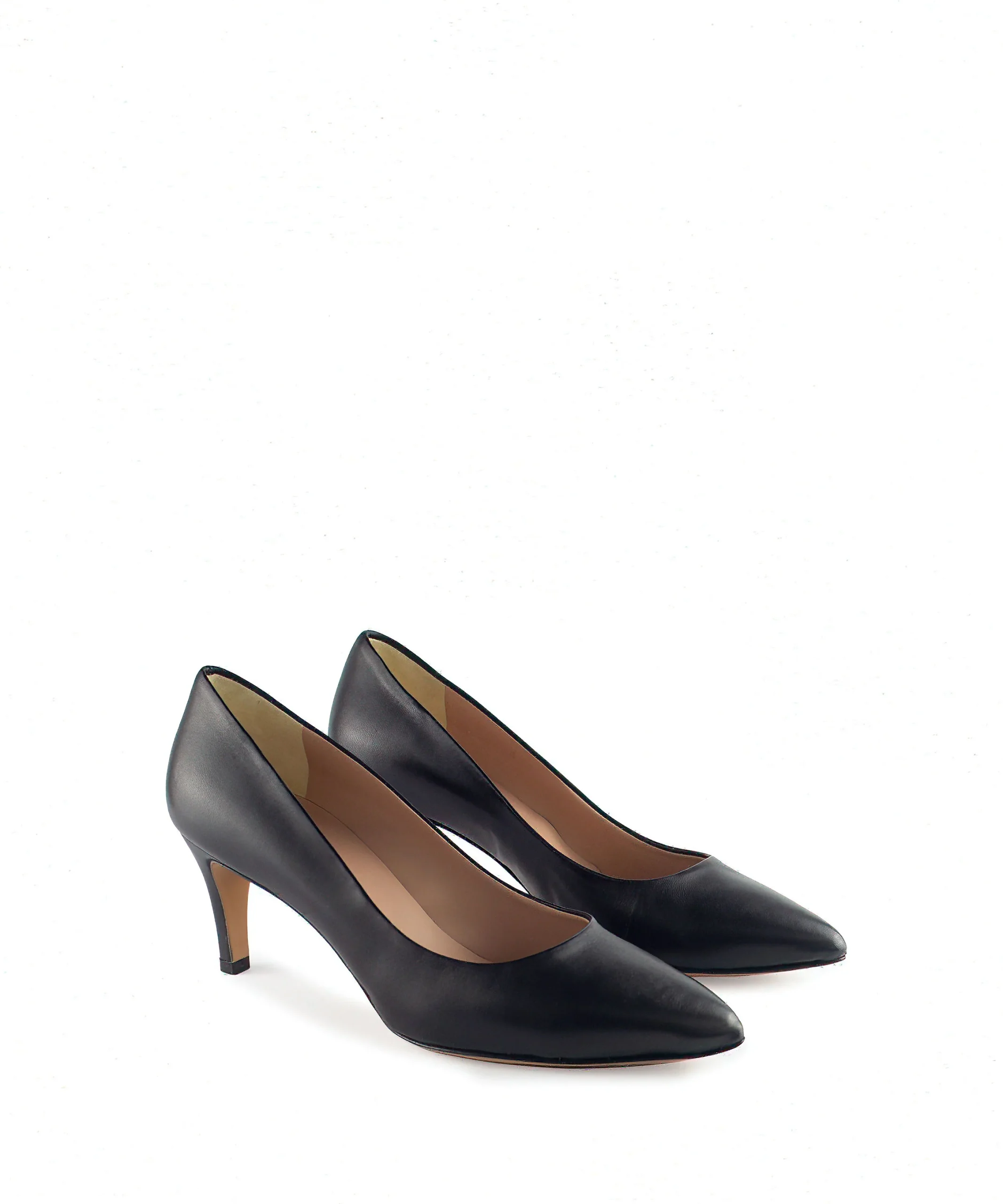 Scarpe Décolleté da donna a punta in pelle nere. Sperimenta l’eleganza senza tempo con le nostre décolleté in pelle dal tacco di 6 cm, realizzate con maestria artigianale in Italia. Queste scarpe da donna hanno una linea sofisticata e materiali di qualità . La pelle avvolge delicatamente il piede, offrendo comfort per tutto il tempo di utilizzo. Ogni dettaglio di questa décolleté in pelle è stato curato con nei minimi particolari.
