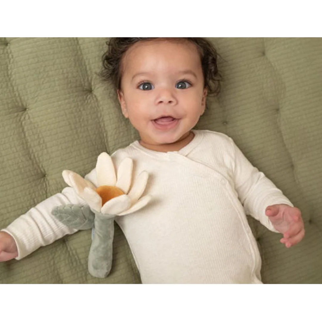 Un sonaglio originale e diverso ma soprattutto studiato per stimolare i sensi del bambino. Un gioco perfetto per incuriosire il bambino e farlo giocare durante il tummy time realizzato con texture diverse per stimolare vista, udito e tatto