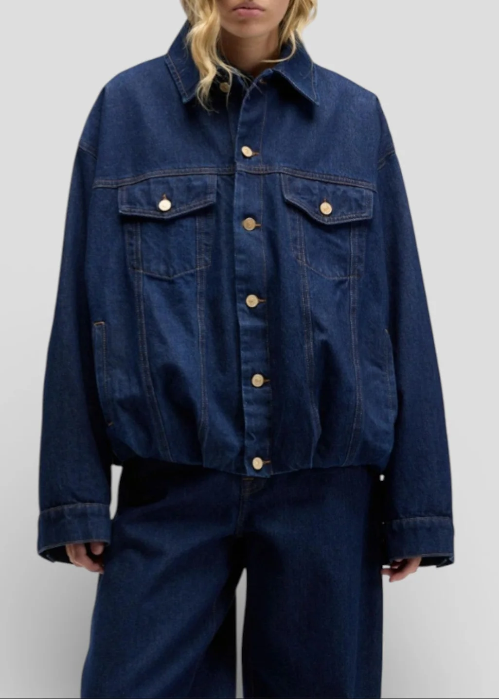 Vestibilità : Modello rilassato su tutto il corpo con fondo modellante, voluminoso nella parte superiore e stretto alla base per una silhouette audace e arricciata.