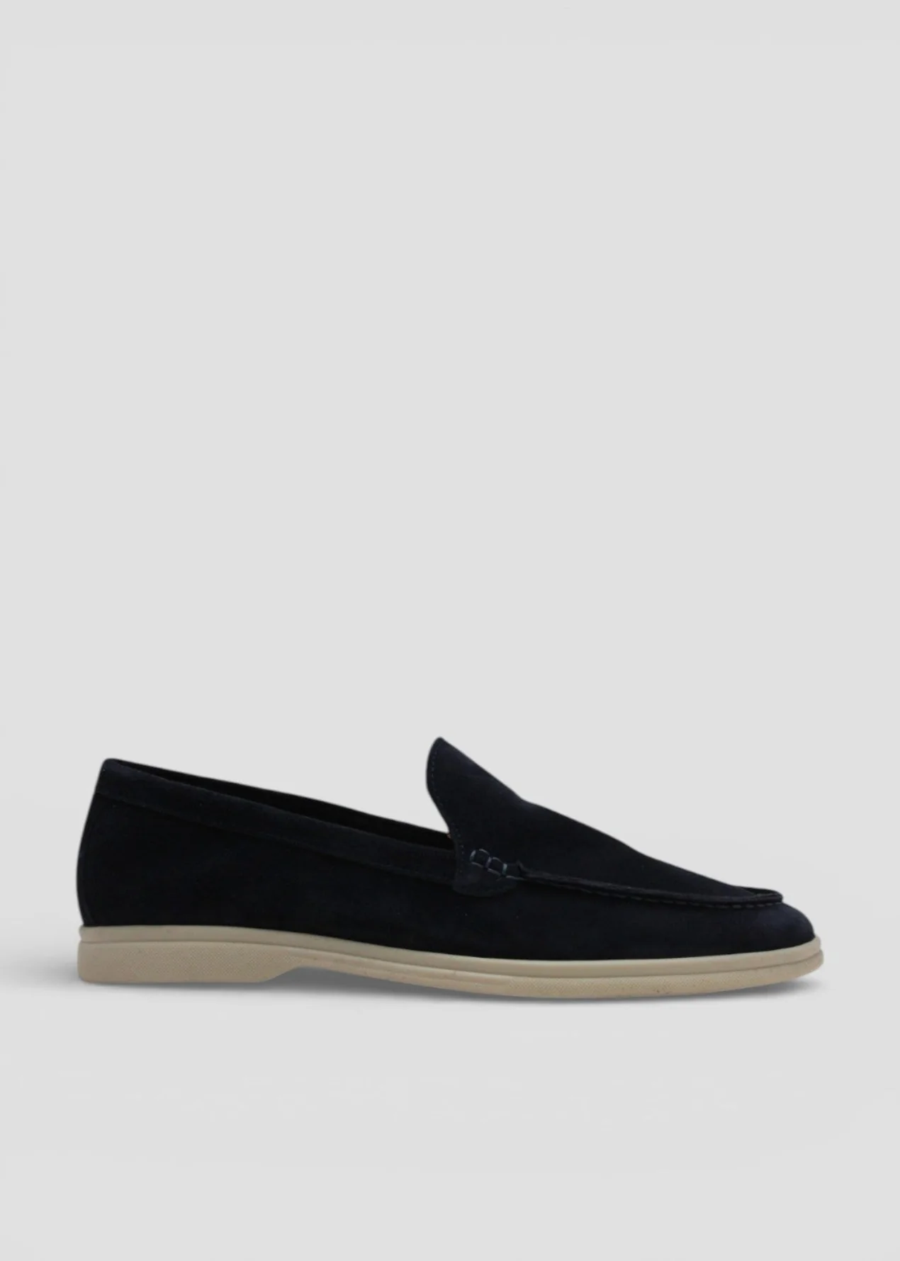 Eleganza essenziale e comfort quotidiano si incontrano in questo raffinato mocassino da uomo in morbido camoscio colore blu notte . Un modello versatile, perfetto per completare con stile sia outfit casual che look più ricercati.