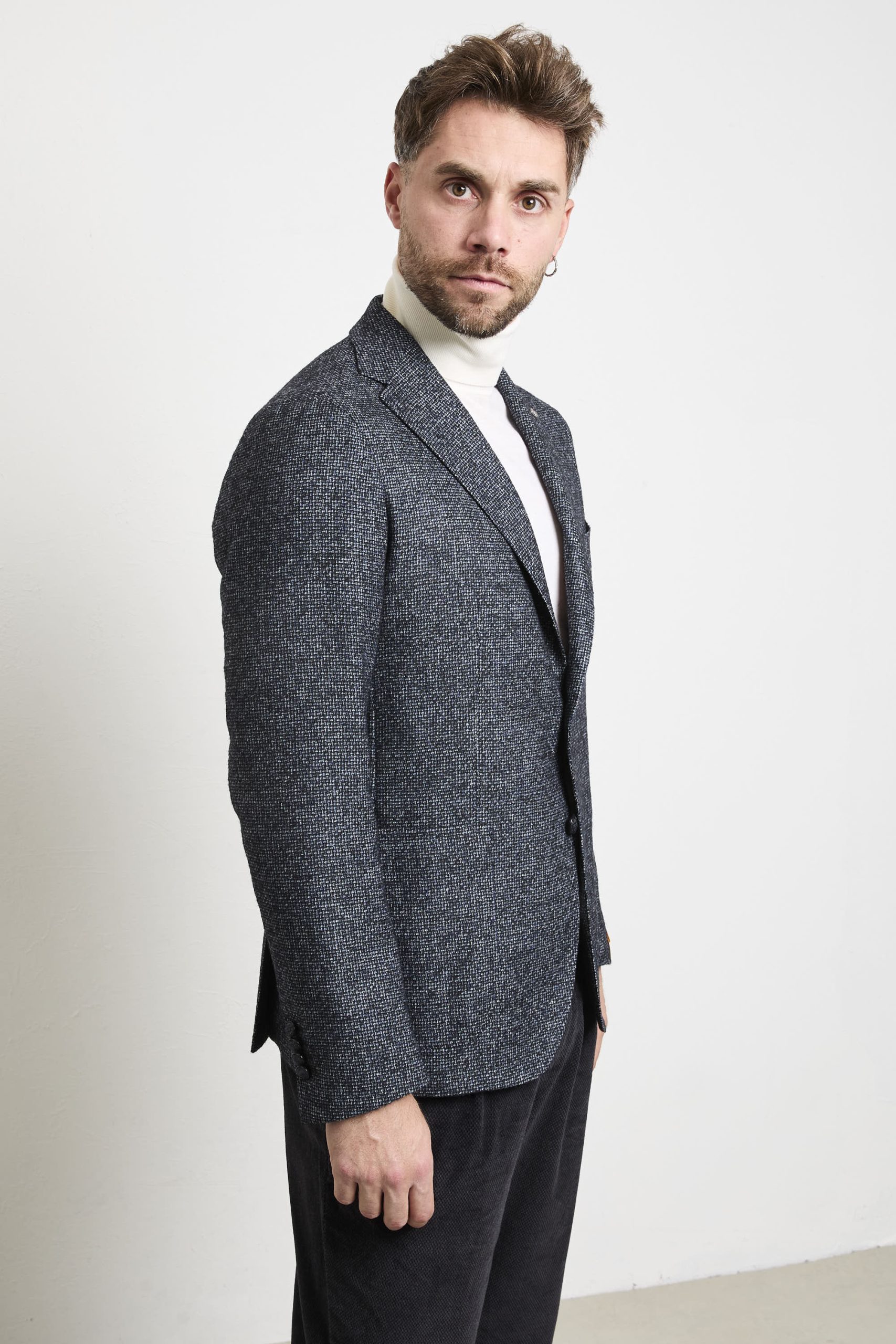 Eleganza e funzionalità si incontrano in questa giacca Tagliatore in mouliné di lana vergine, perfetta per chi cerca uno stile raffinato senza rinunciare al comfort. Il suo blu intenso aggiunge carattere ad ogni look, mentre la costruzione foderata e il doppio spacco dietro assicurano una vestibilità impeccabile e una grande libertà di movimento. Le tasche interne offrono praticità , mentre il design destrutturato e il rever a lancia completano il look moderno e sofisticato. Abbinala a pantaloni a gamba larga in lana o tweed, una camicia in flanella e un cappotto in lana pesante per un look elegante e caldo. Per un’opzione più casual-chic, prova con un dolcevita in cashmere, jeans scuri e stivaletti in pelle, per un tocco sofisticato anche durante il weekend.