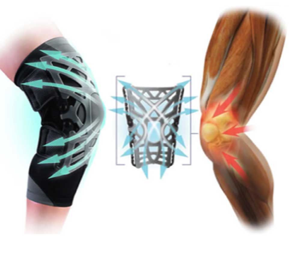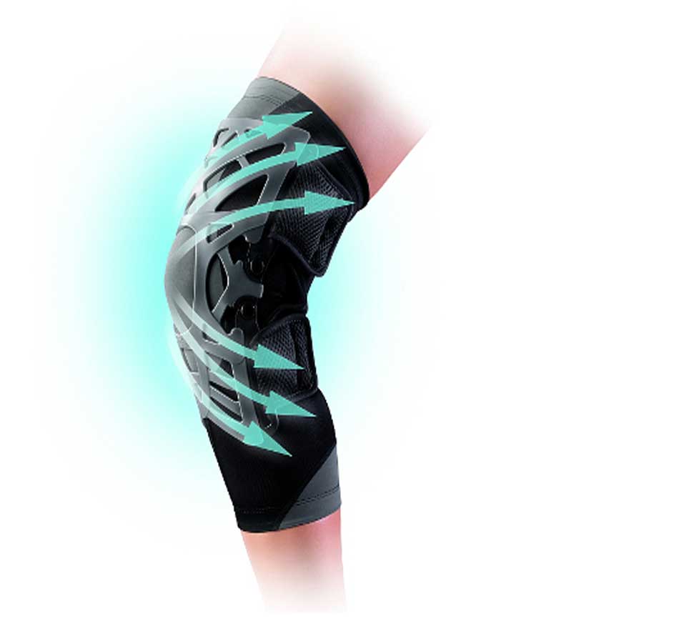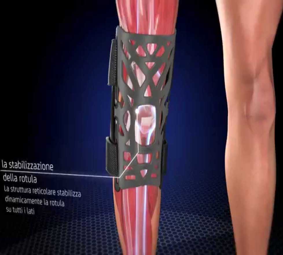 La struttura reticolare consente la dispersione dell’energia e l’assorbimento degli urti per ottenere un sollievo graduale dal dolore, è composta in elastomero e aiuta a ridurre il dolore dissipando l’energia su tutto il ginocchio; le membrane flessibili si allungano con il movimento dell’articolazione e tornano poi alle loro dimensioni originali, assorbendo gli urti e spostando la maggior parte del carico lontano dal punto doloso; la perfetta aderenza, la compressione e la capacità di allungamento delle membrane garantiscono una maggiore propriocezione (controllo muscolare) durante la flessione e l’estensione. La struttura aperta garantisce la massima aderenza alla rotula e si adatta alle caratteristiche anatomiche del ginocchio; il supporto a rete agevola il movimento ed assicura la traspirazione; la sensazione generale è di maggior comfort rispetto alle ginocchiere tradizionali. La struttura reticolare crea stabilizzazione dinamica della rotula su tutti i lati, creando anche tensione sui tendini rotulei e del quadricipite, per ridurre il dolore. Grazie alla flessibilità dello snodo il ginocchio è sostenuto anche in posizione neutra. Le cinghie regolabili aiutano la ginocchiera a rimanere in posizione durante le attività quotidiane e sportive. Dotato del sotto-ginocchiera per prevenire l’irritazione cutanea e garantire compressione e mantenimento dei tessuti.