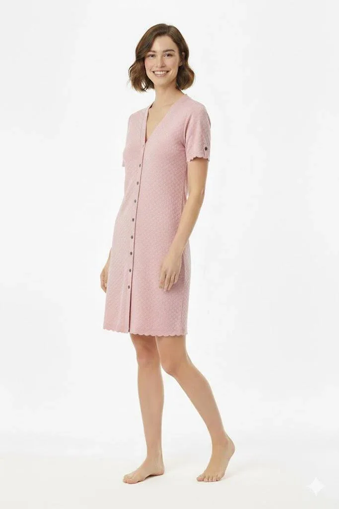 Il tessuto piquet aggiunge un tocco di classe a questa vestaglia, perfetta per sentirsi curate e comode anche a casa.