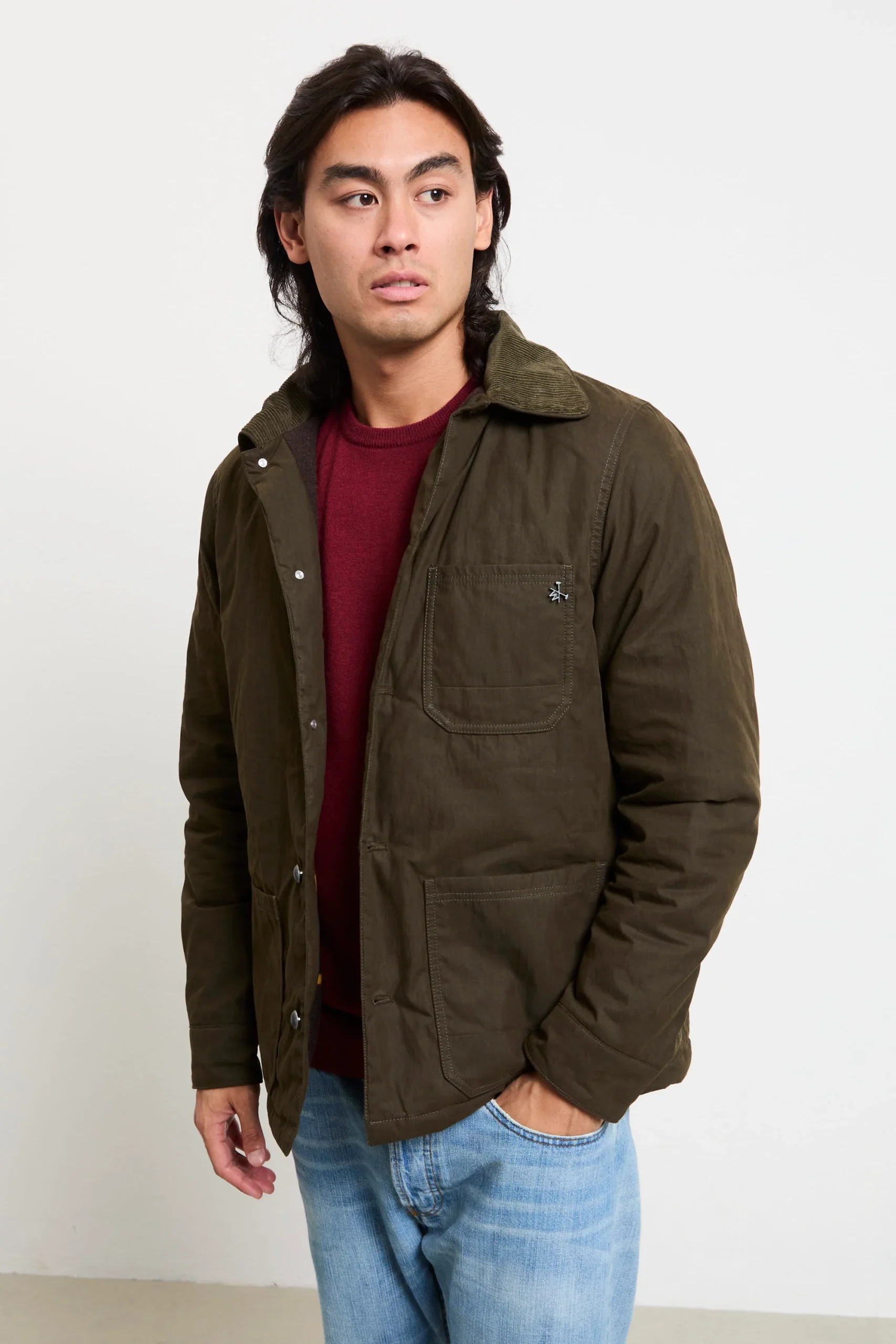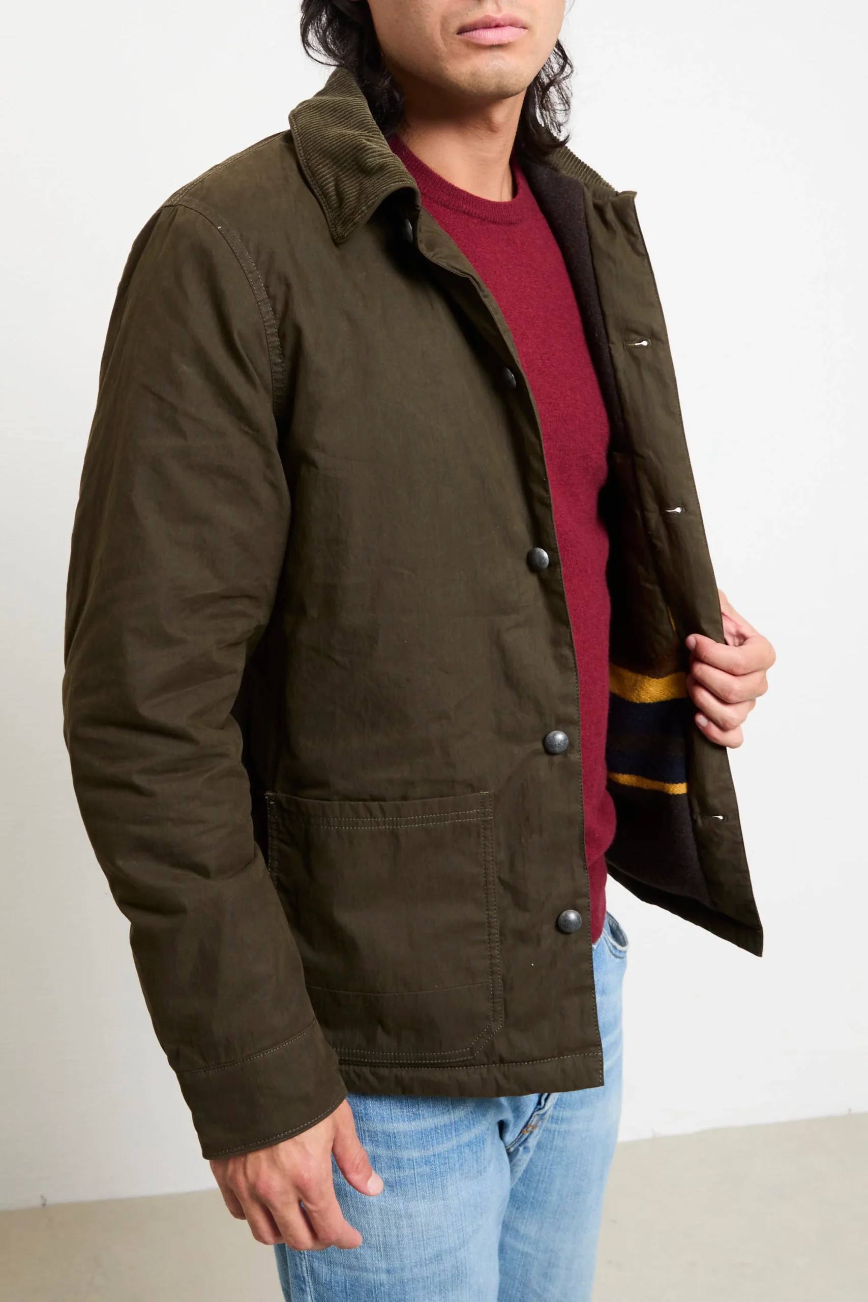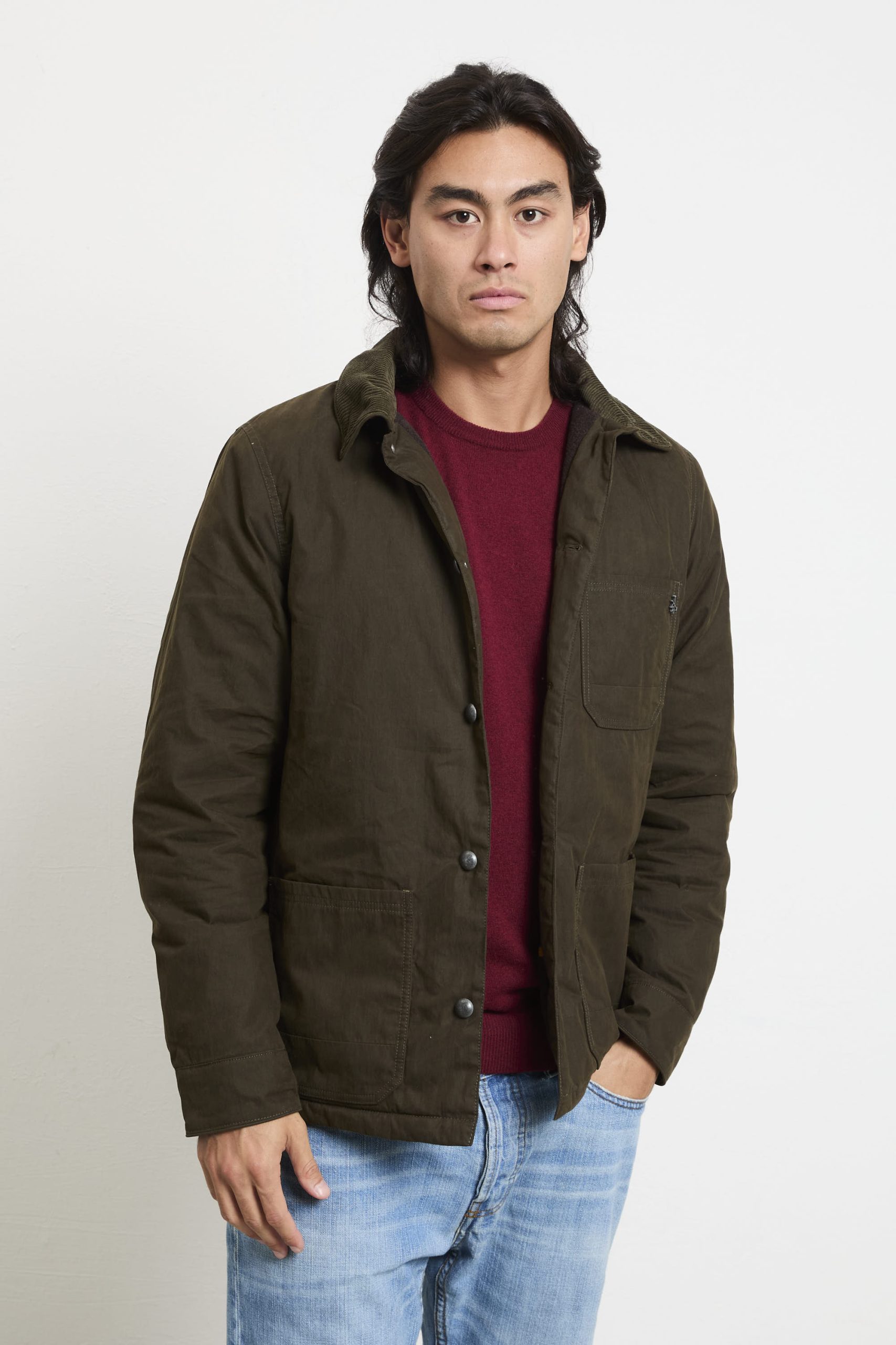 Il giubbotto Hamilton Quilted Chore è l’ideale per chi cerca praticità e stile senza compromessi. Il trattamento cerato lo rende resistente agli agenti atmosferici, mentre l’interno foderato offre calore e comfort. Il collo in velluto a coste aggiunge un tocco di eleganza e morbidezza. Le tasche interne ed esterne, la chiusura con zip nascosta e bottoni, e il fondo dritto lo rende perfetto per un look casual ma ricercato. Abbinalo a una t-shirt bianca, pantaloni chinos e sneakers per un look rilassato ma sempre curato, oppure sopra una felpa con cappuccio e jeans per un outfit più sportivo e dinamico. Per un tocco più sofisticato, indossalo con un pullover in cashmere, pantaloni slim e stivaletti in pelle. Un giubbotto che combina funzionalità , eleganza e comfort, ideale per ogni stagione.