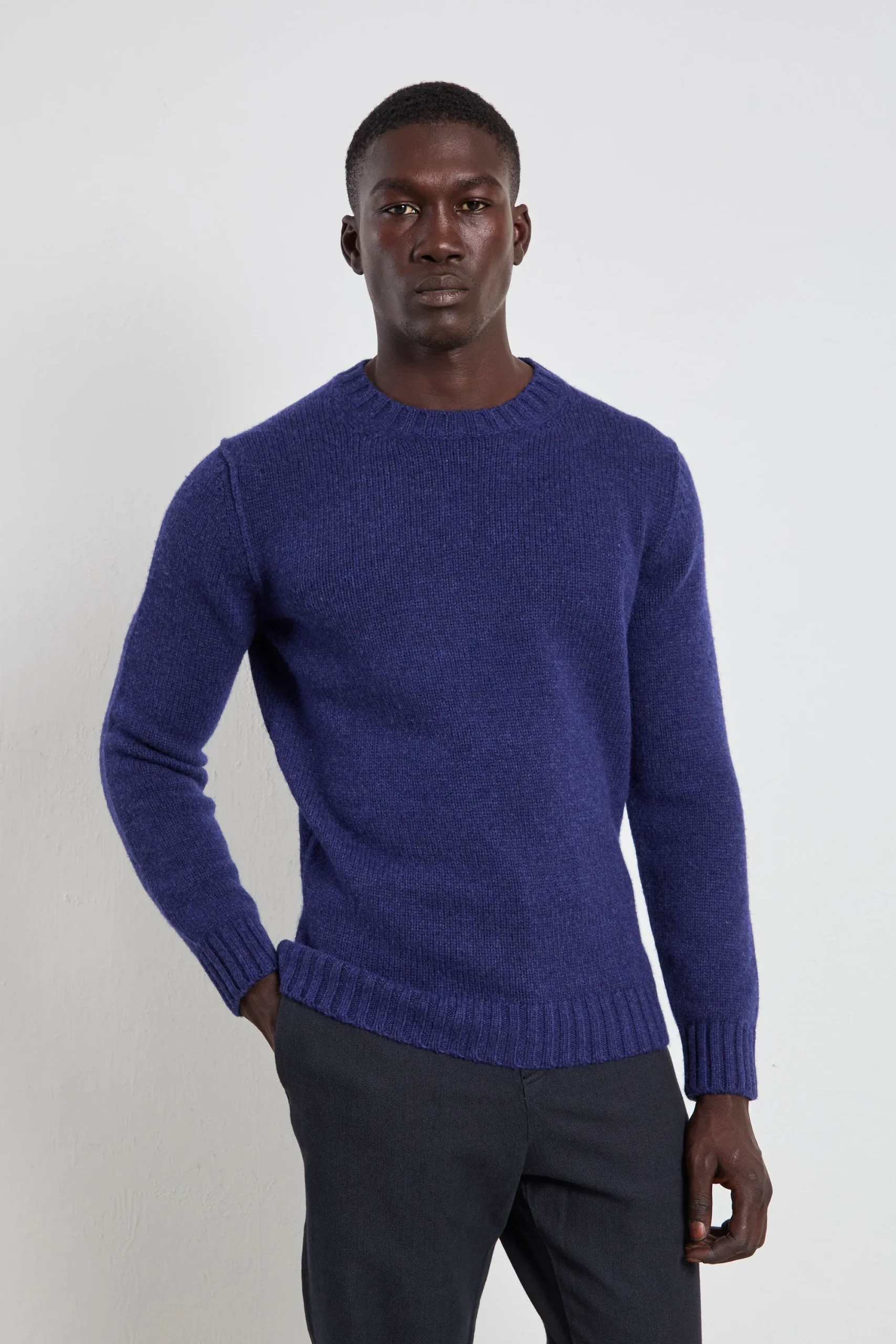 Questa è la maglia girocollo essenziale in lana, jersey morbido e finiture a coste per un look pulito e sofisticato. Calda ma leggera, funziona da capo singolo con jeans slim e stivaletti o come strato sotto un cappotto tecnico per un outfit urbano curato.