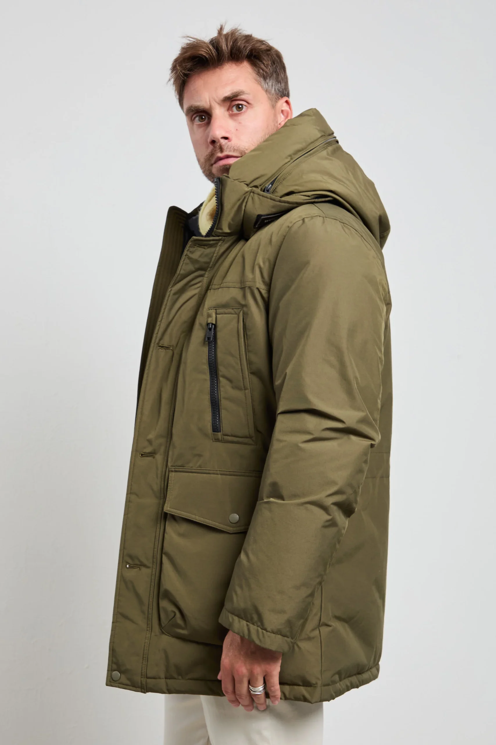Il Ramar Artic è perfetto per affrontare l’inverno con stile senza rinunciare al comfort. Realizzato in Ramar Cloth, un tessuto tecnico resistente e idrorepellente, garantisce protezione contro vento, pioggia e freddo. L’imbottitura in piuma e piumino mantiene calore e leggerezza. La chiusura con doppia zip e bottoni a pressione assicura massima protezione, e il sistema di vita regolabile con coulisse interna permette una silhouette personalizzata. Perfetto con pantaloni in lana e stivali in pelle per un look sofisticato in città , con jeans e maglione per outfit casual-chic, oppure con pantaloni tecnici e scarponcini per attività outdoor.