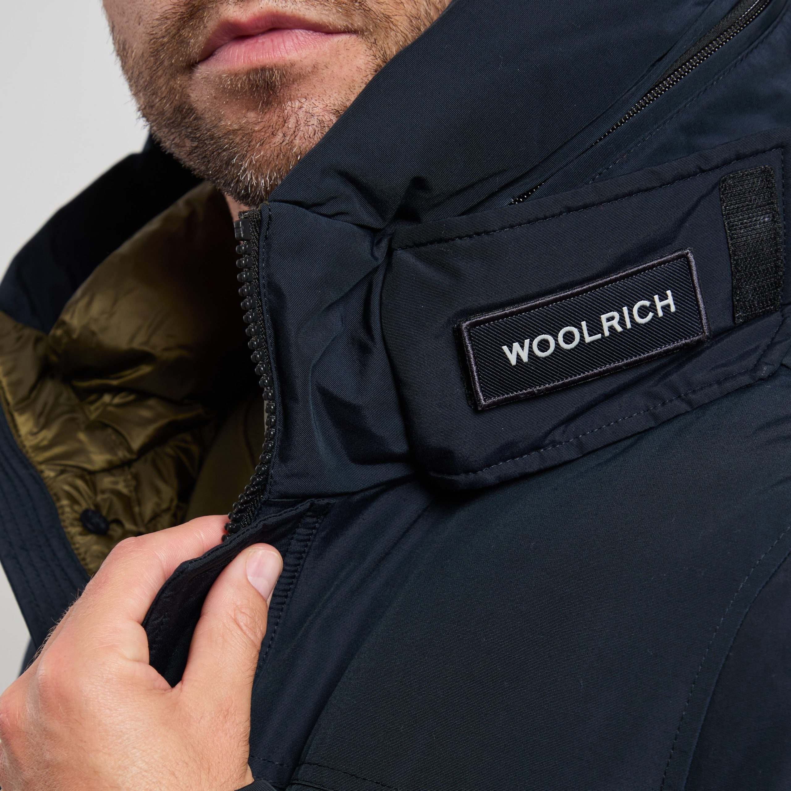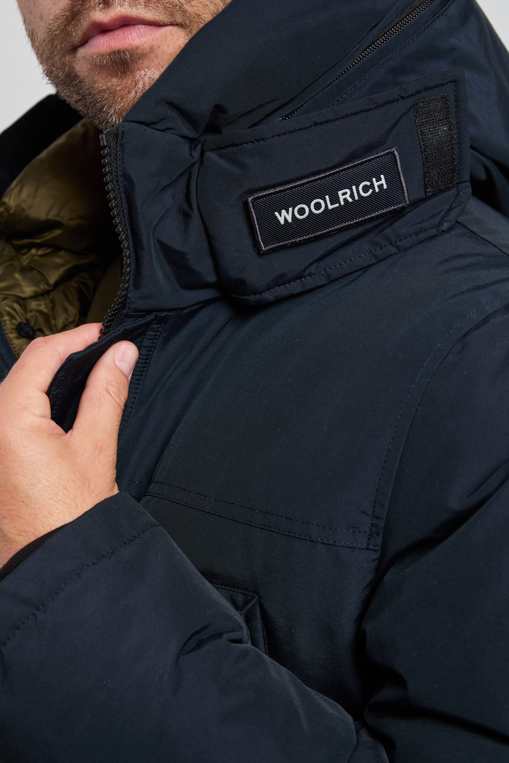 Logo: patch staccabile nel collo e nel cappuccio richiudibile con zip