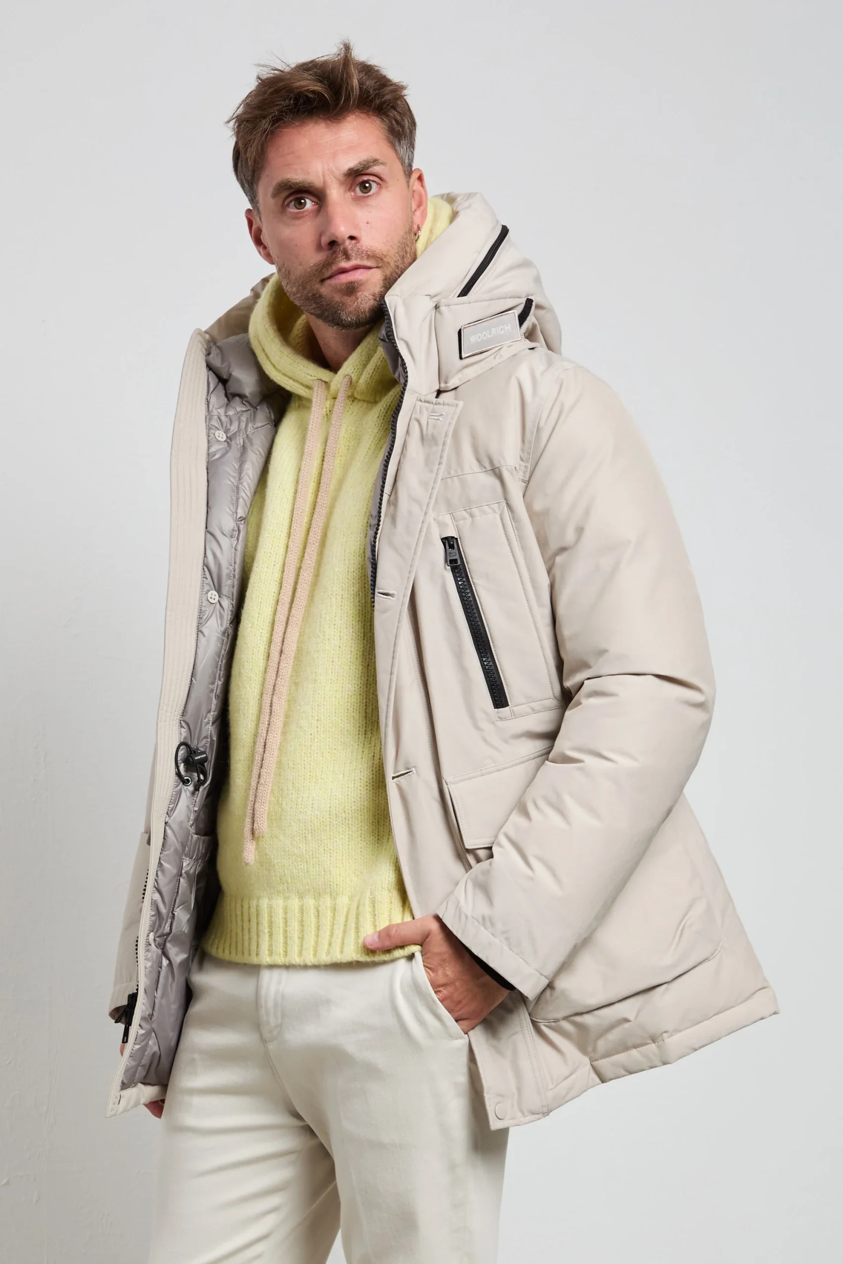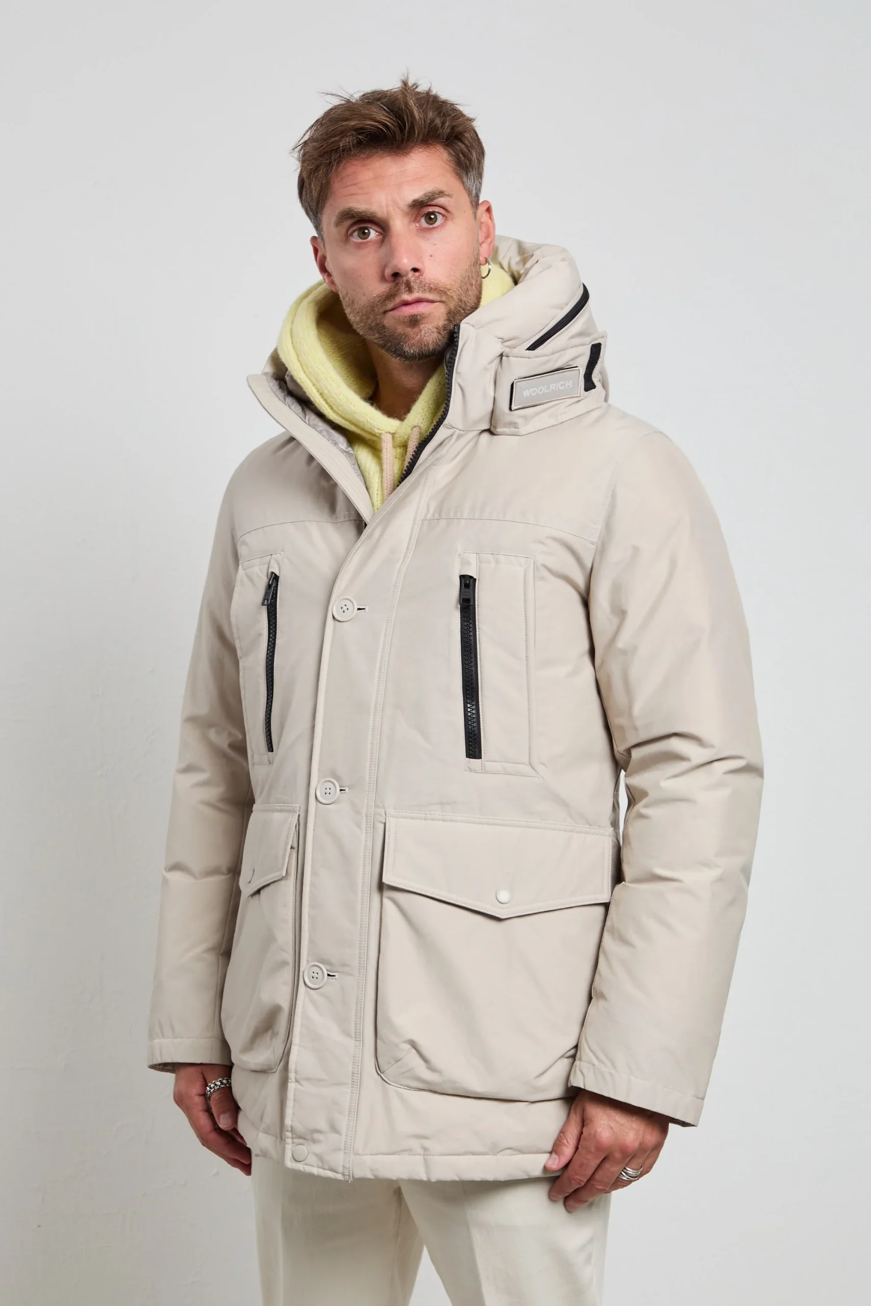 Il Ramar Artic Parka è il mix perfetto tra stile, funzionalità e comfort per affrontare l’inverno con eleganza. Realizzato in Ramar Cloth, un tessuto tecnico resistente e idrorepellente, protegge efficacemente da vento, pioggia e freddo. L’imbottitura in piuma e piumino assicura calore avvolgente senza appesantire, mentre la doppia chiusura con zip e bottoni a pressione mantiene il corpo isolato dalle intemperie. La coulisse interna in vita permette di personalizzare la vestibilità , valorizzando la silhouette.