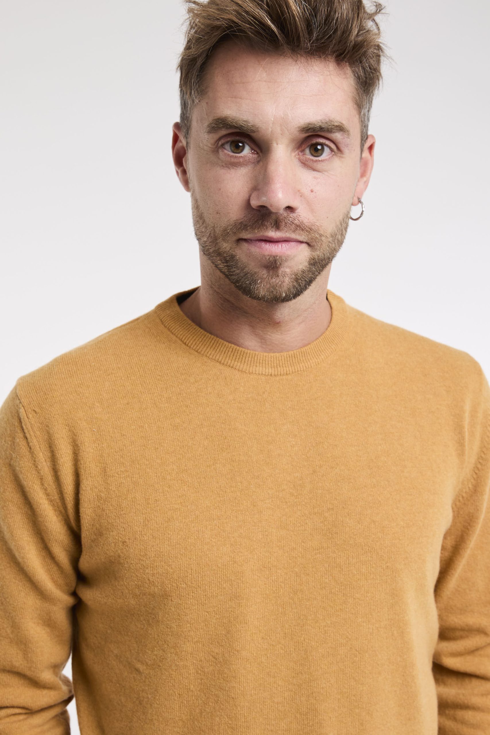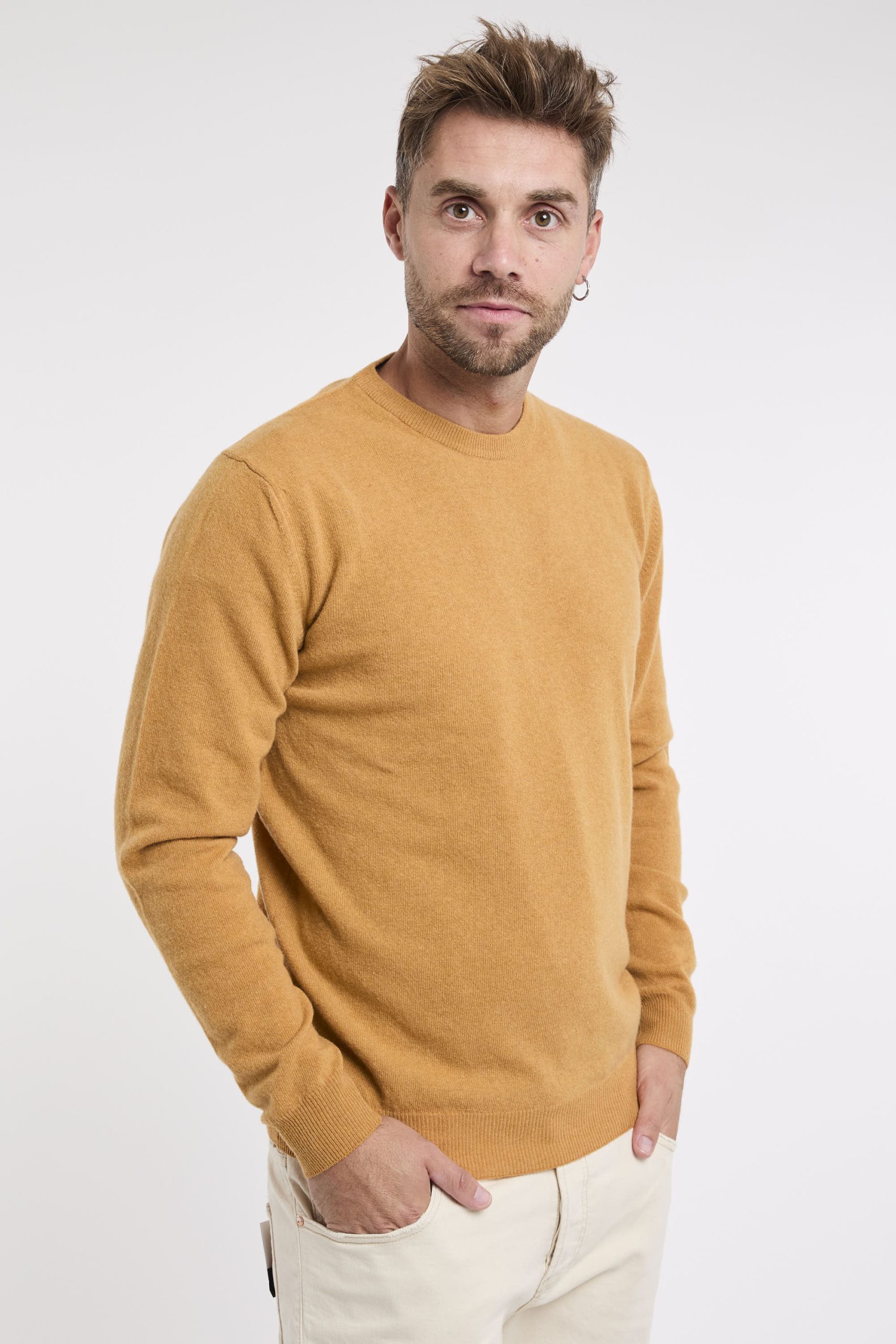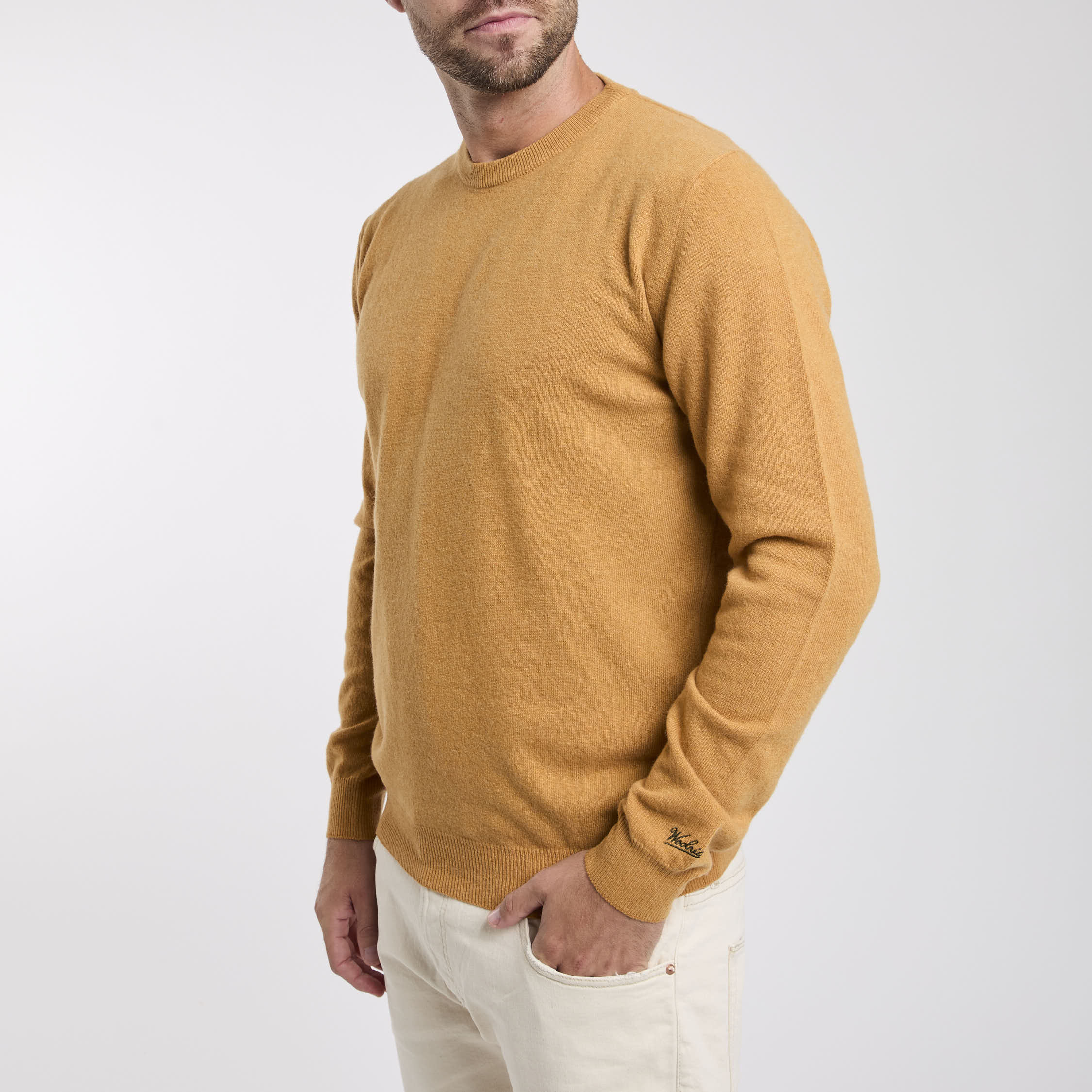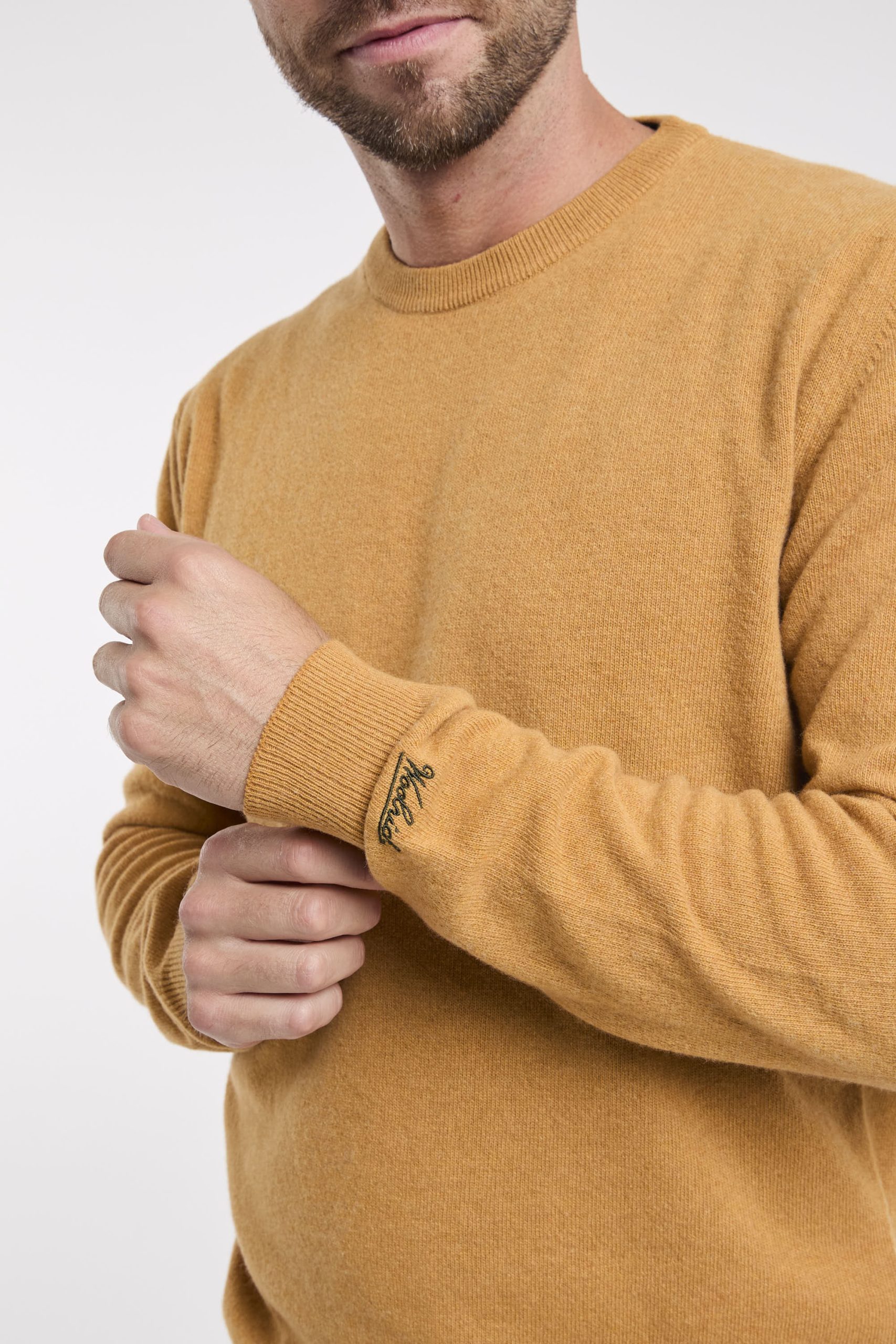 Maglia in lana; Girocollo; Polsini e fondo a costine; Logo in evidenza sulla manica; Composizione: 100% Lana