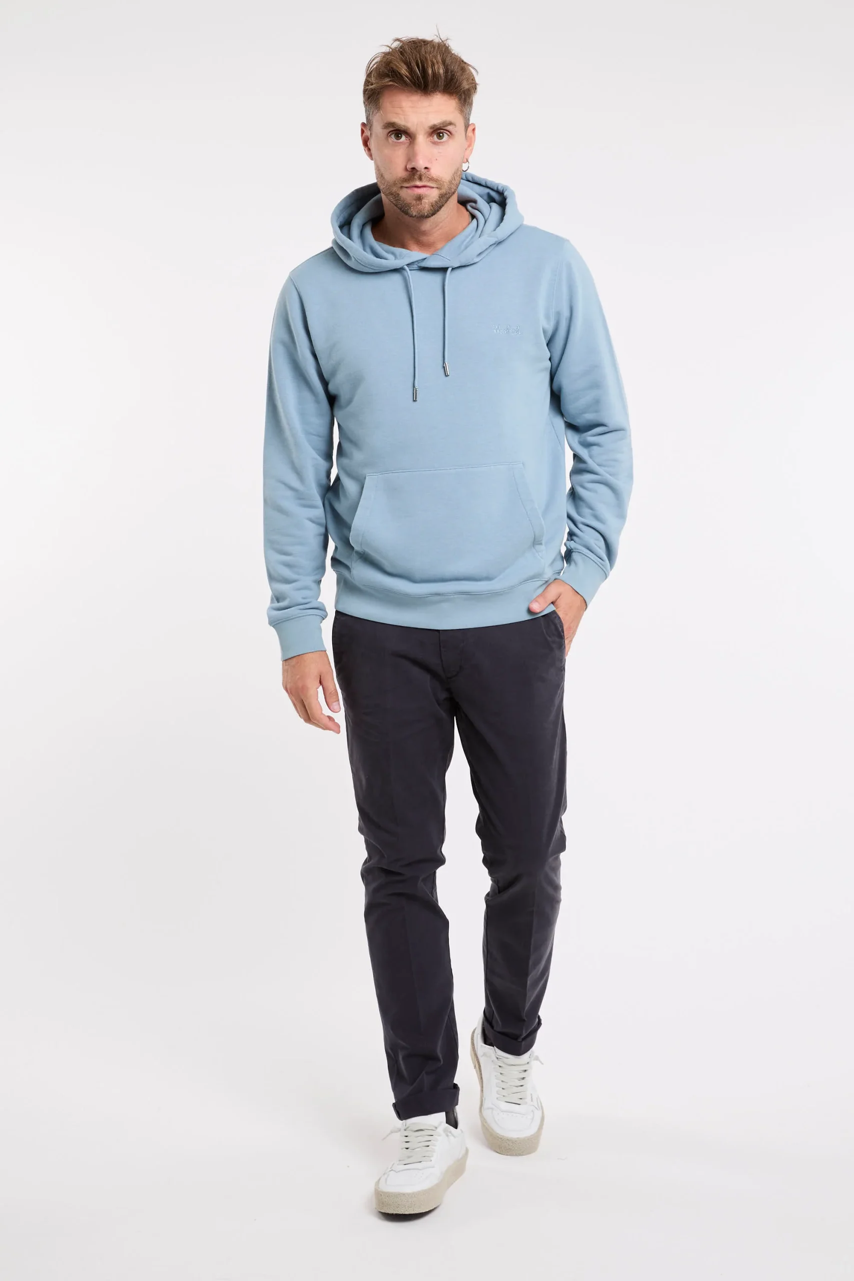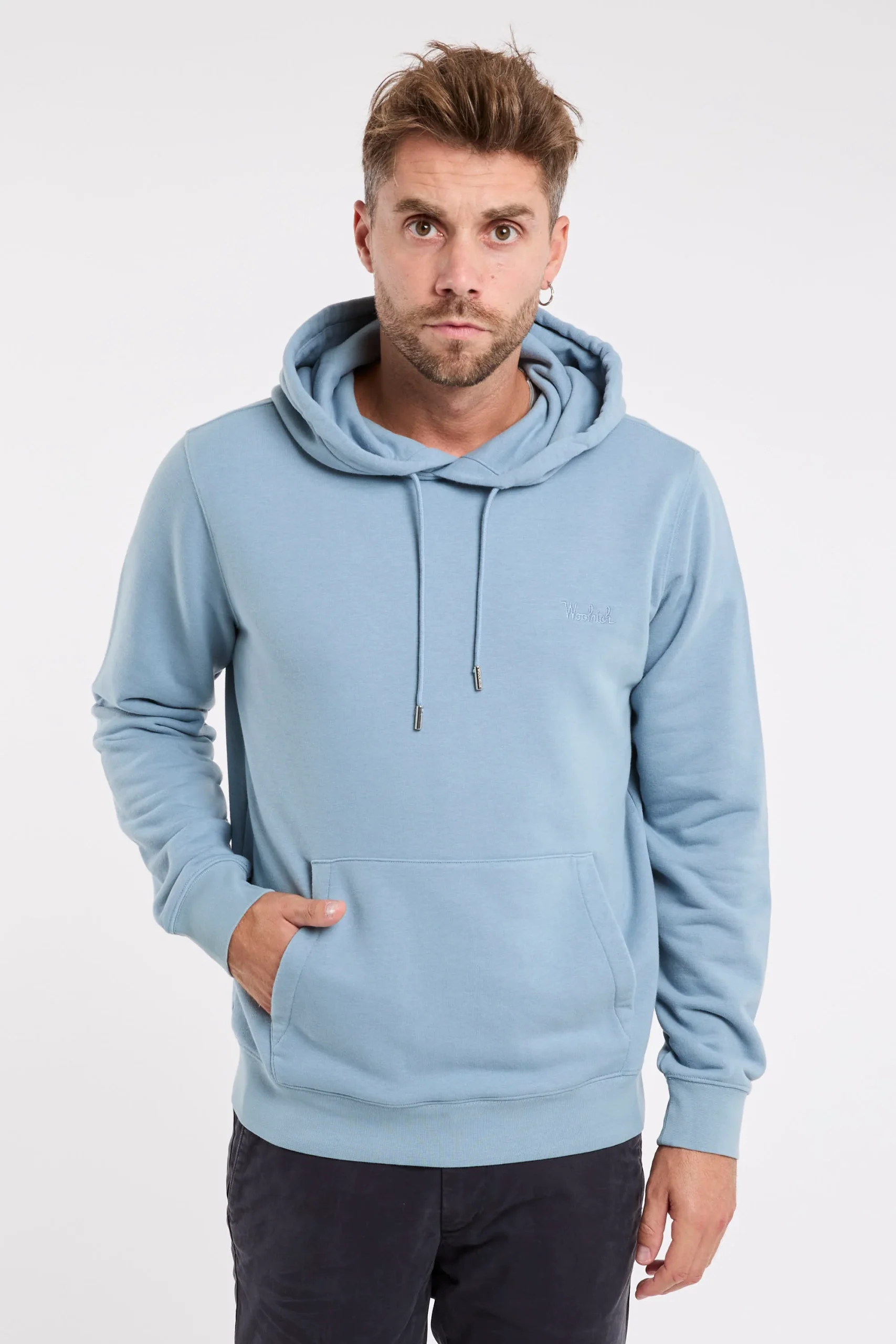 Felpa in misto cotone; Cappuccio con la coulisse regolabile; Maniche lunghe; Giro, polsi e fondo a coste; Logo in evidenza ricamato sul petto sinistro; Tasca a marsupio; Composizione: 66% Cotone, 34% Poliestere