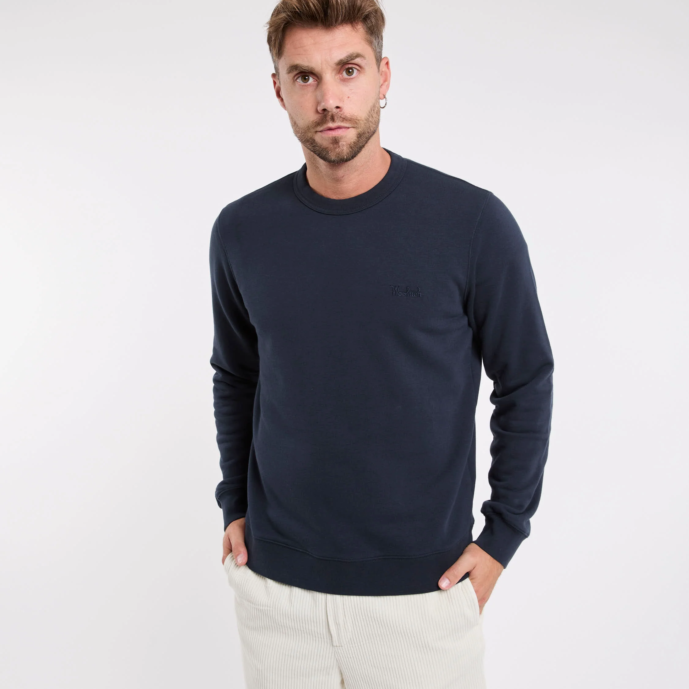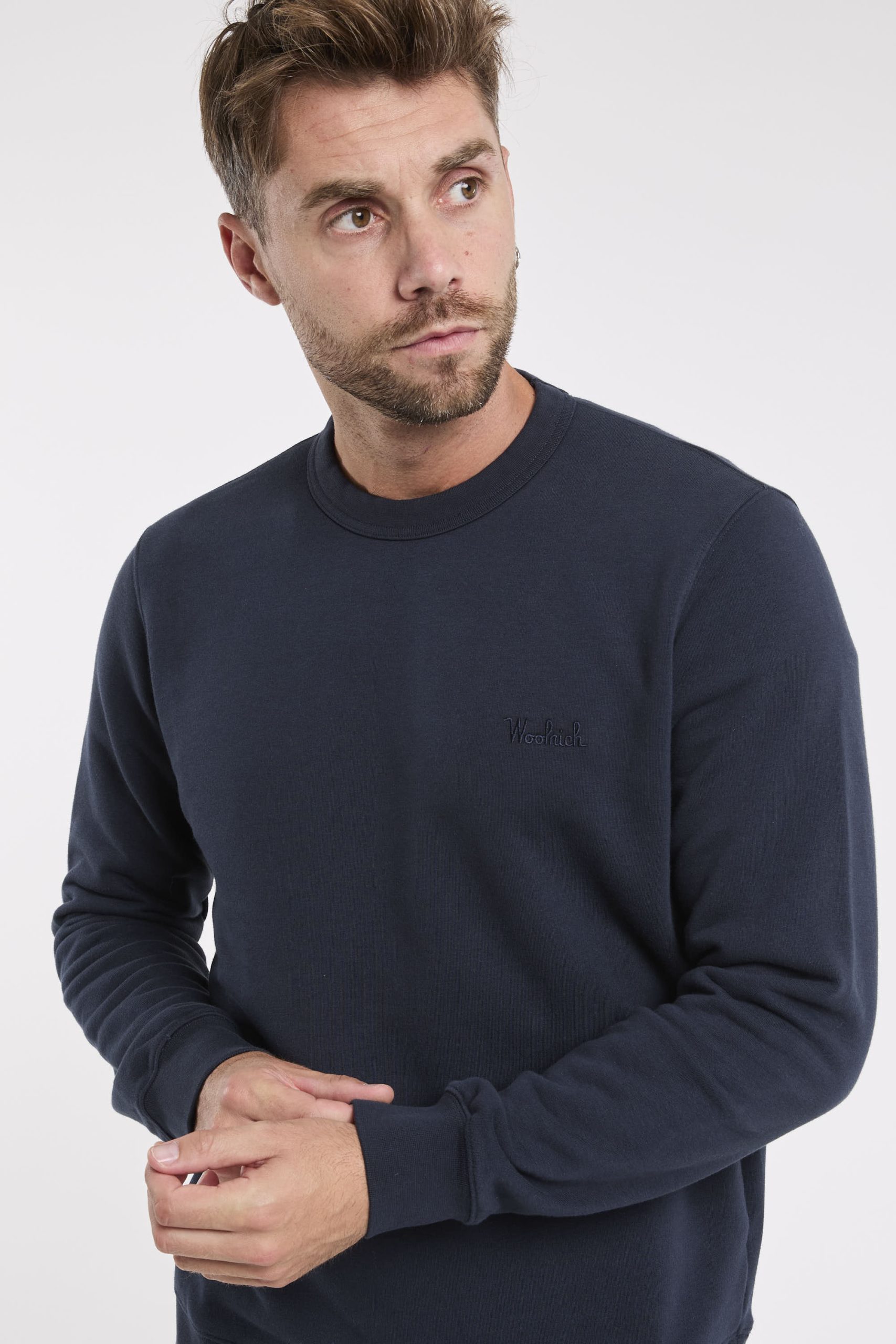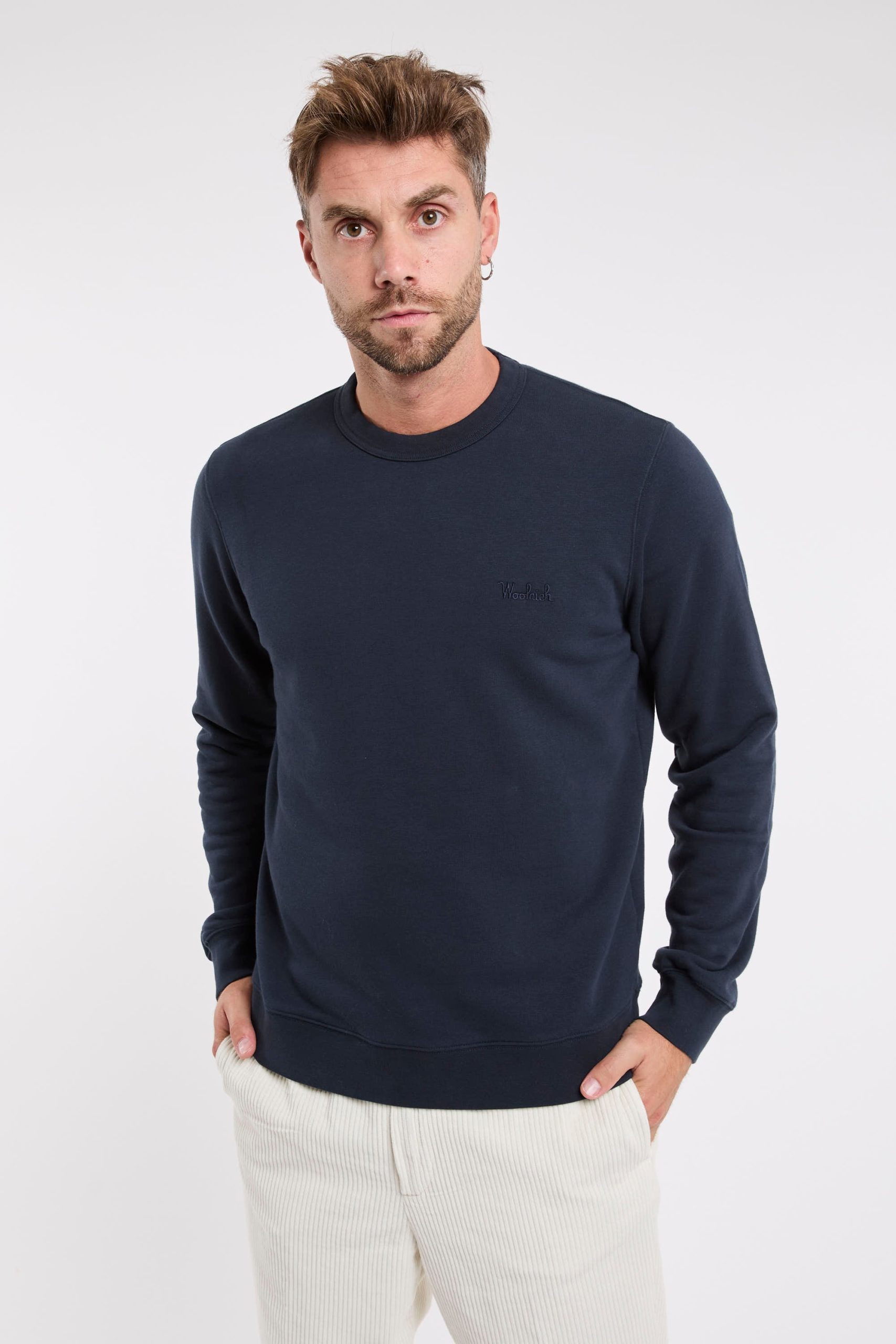 Felpa in misto cotone; Girocollo; Maniche lunghe; Giro, polsi e fondo a coste; Logo in evidenza ricamato sul petto sinistro; Composizione: 66% Cotone, 34% Poliestere