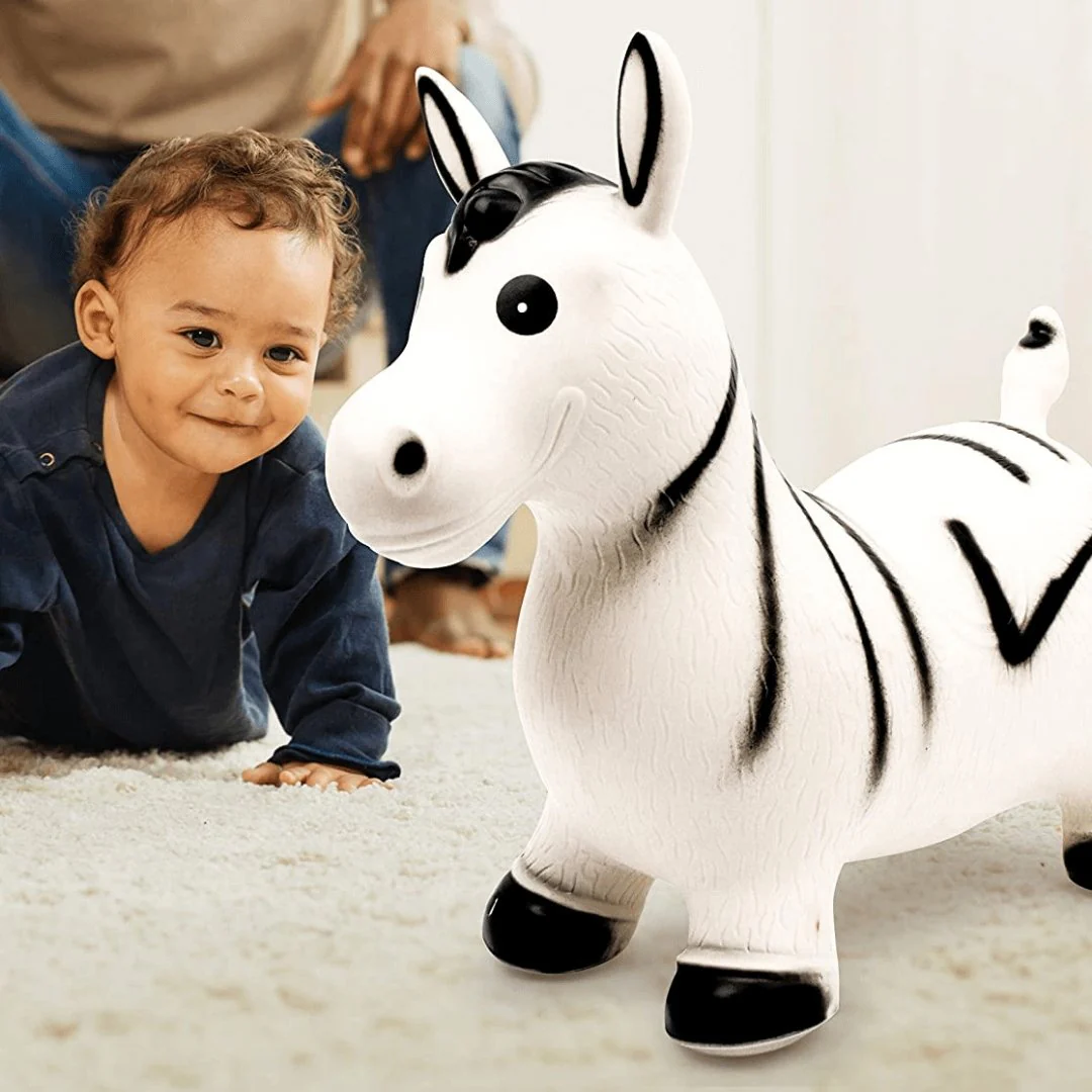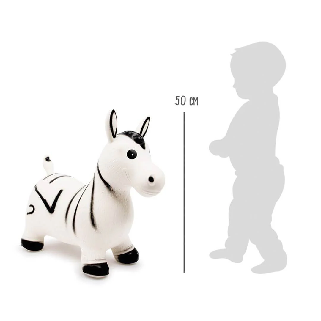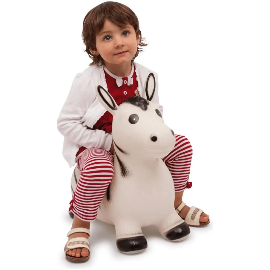 Cavalcabile e gonfiabile Zebra Zoe è pensata per essere utilizzata sia in casa che fuori, ha le dimensioni perfette per permettere ai bimbi di saltare e cavalcarla in tutta sicurezza e il collo alto al quale aggrapparsi senza correre il rischio di rovesciarsi in avanti e cadere.